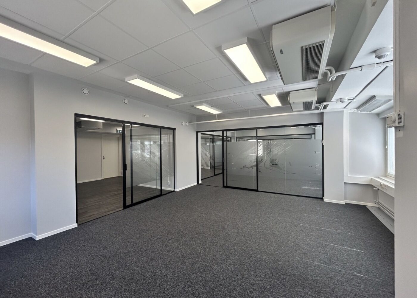 Tila on mahdollista yhdistää viereiseen 230 m2 toimistoon, jolloin kokonaisuudeksi muodostuu noin 550 m2 joustava ja tehokas toimistokokonaisuus.
