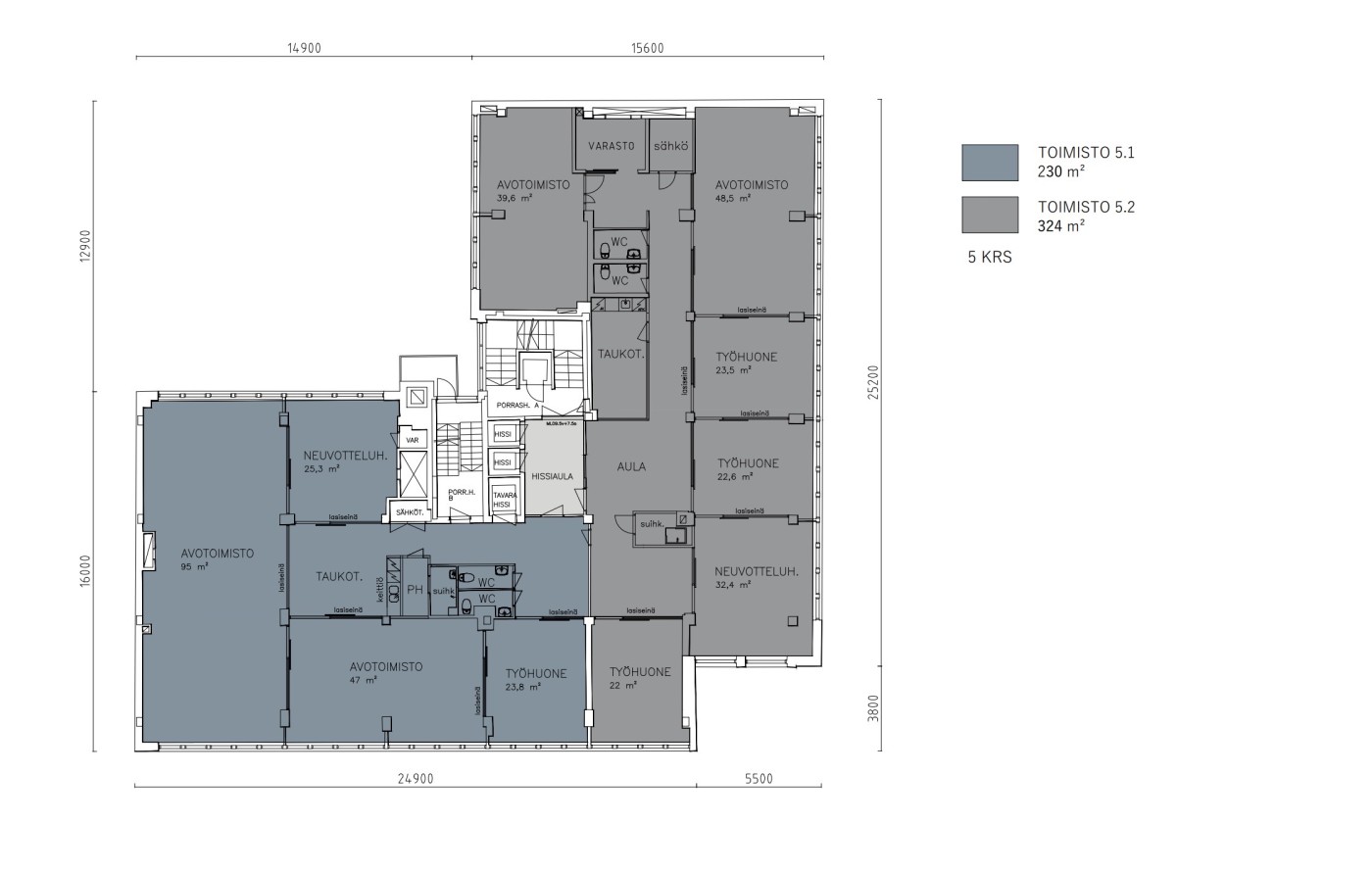 Vuokrataan 324 m2 toimistotila, 5. kerros – kaksi neukkaria ja monipuolinen tilaratkaisu!