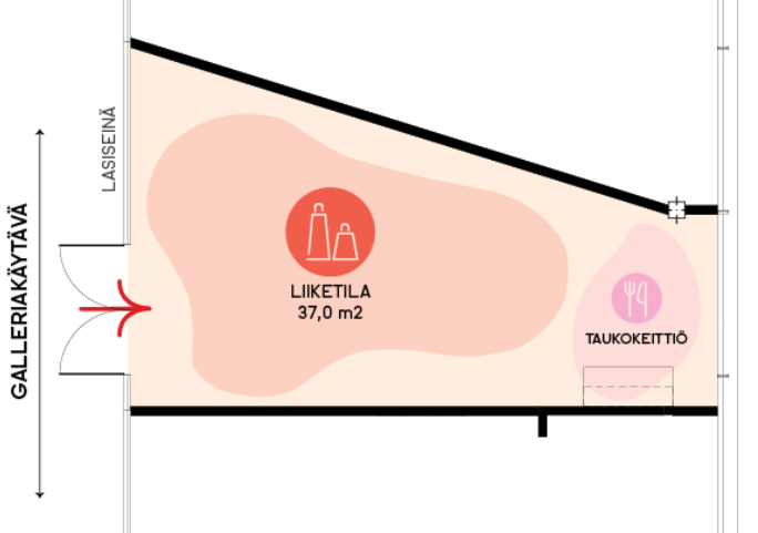 Vuokrattavana liiketila ( 37 m2) Arabia 135 tehdaskorttelista, joka edustaa suomalaista design-historiaa. Liiketila sijaitsee näkyvällä paikalla galleriakäytävällä Pentik-liikkeen vastapäätä. Tilassa on oma keittiö. Yhteiskäyttöiset sosiaalitilat.