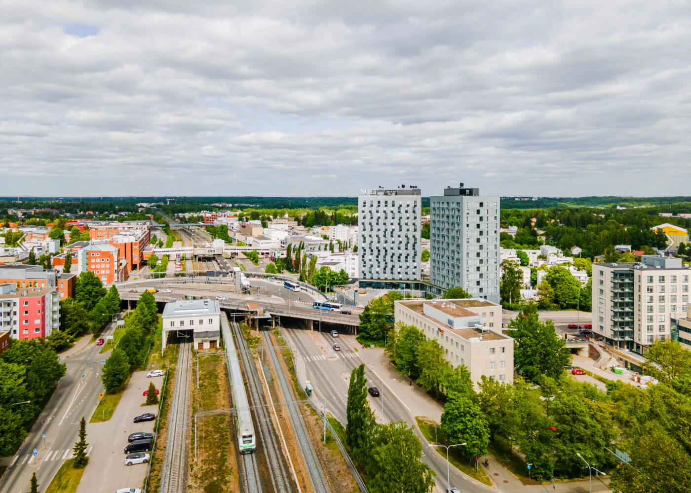 Juna-asema ja bussiterminaali ovat aivan kiinteistön lähellä.