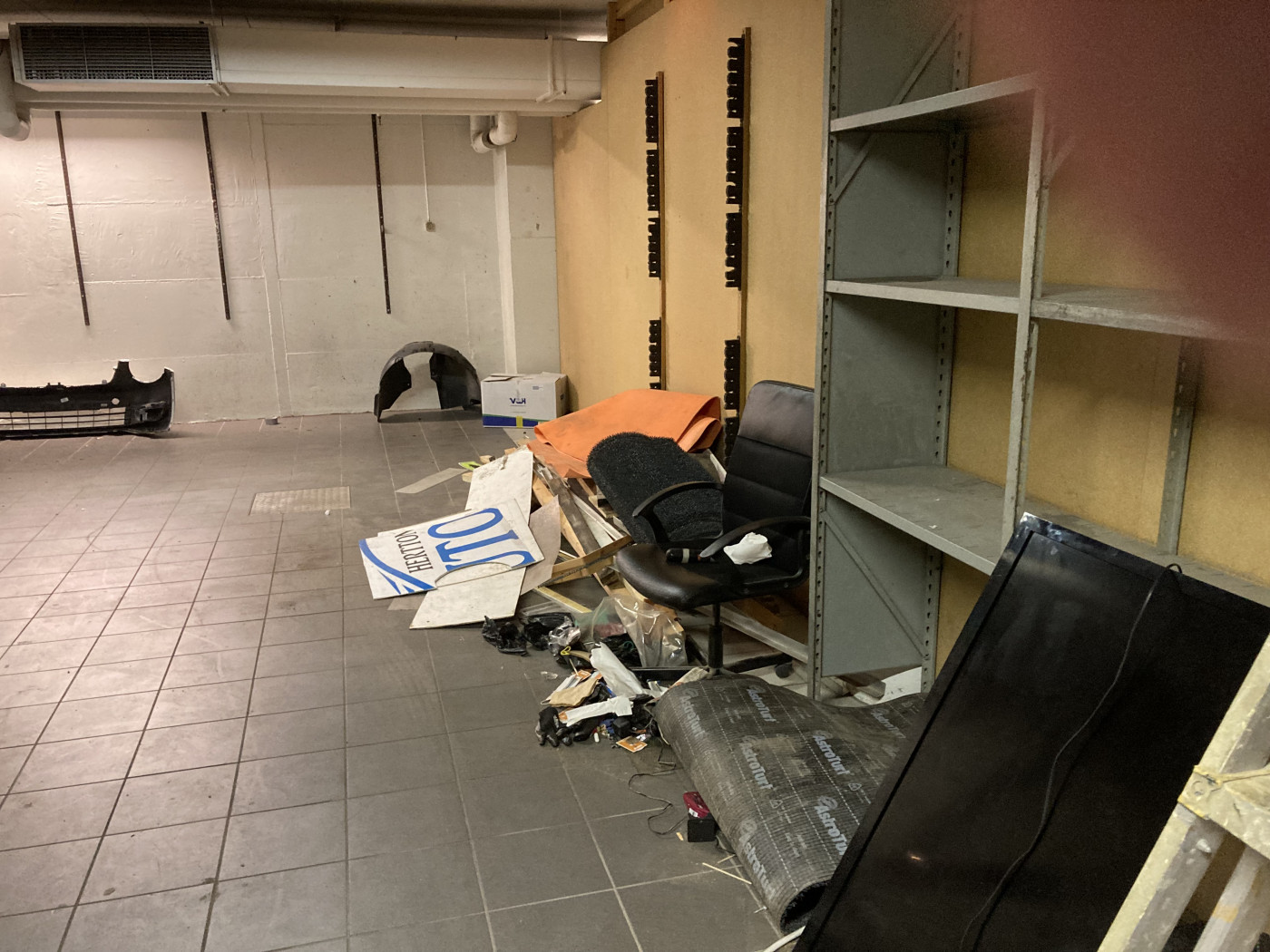 Vapaana pohjakerroksen varastotila 92 m2. Sisäänajettava pakulla tilan eteen ajoluiskaa pitkin. Tila on sisäkuvasta poiketen L-muotoinen. Vuokraan lisätään alv.