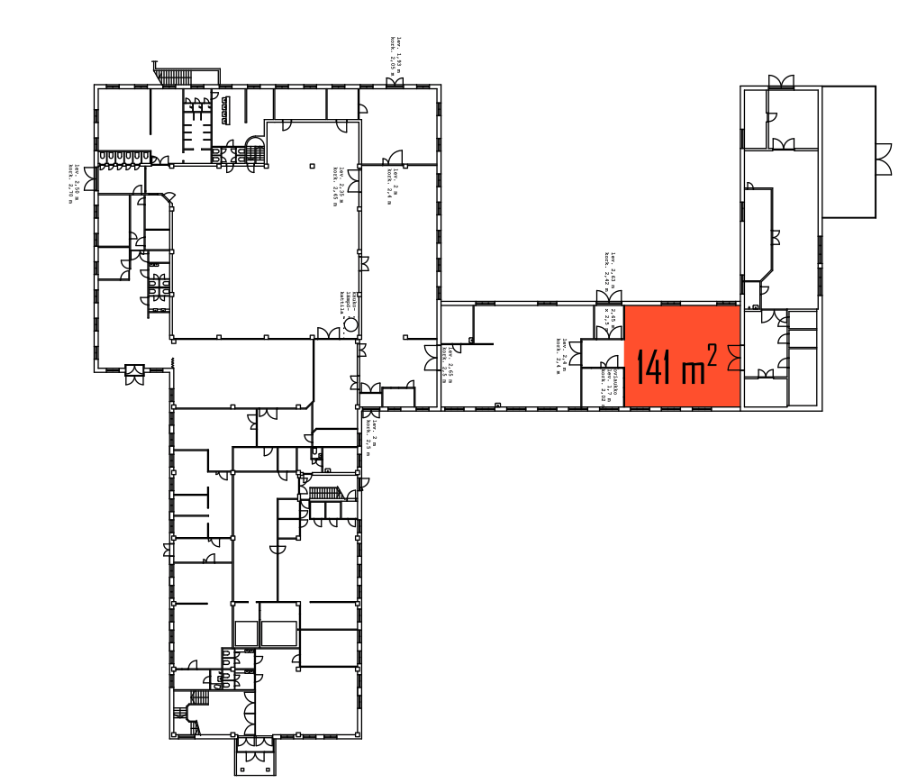 141m2 varastotila, jonne yhteiskäytössä oleva lastausovi (leveys 2,63 m, korkeus 2,42 m) sisäpihan puolella.