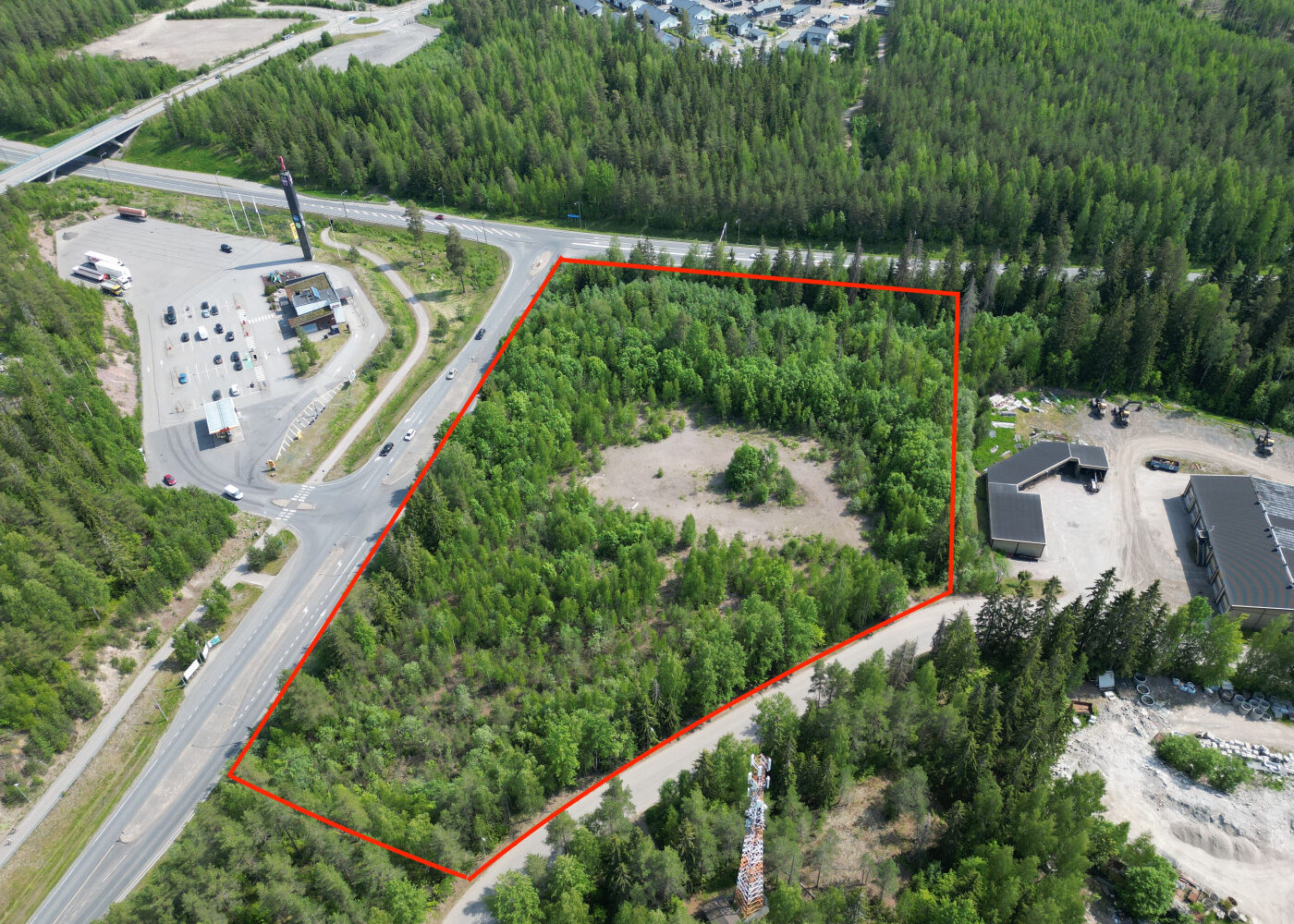 Myydään Hyvinkäällä Valtatie 25:n, Hangonväylän, varrella rakentamaton tontti jonka pinta-ala on 12.281 m2 ja rakennusoikeutta 3684 k-m2.