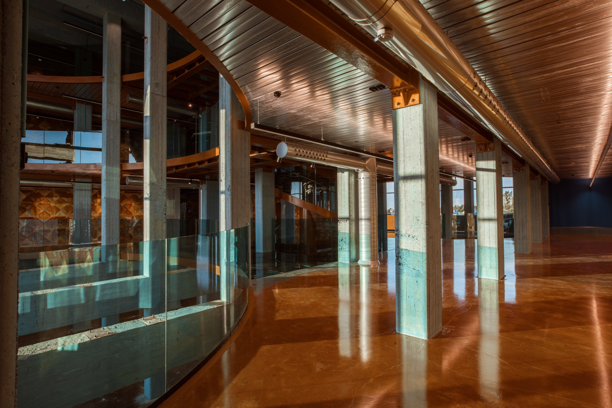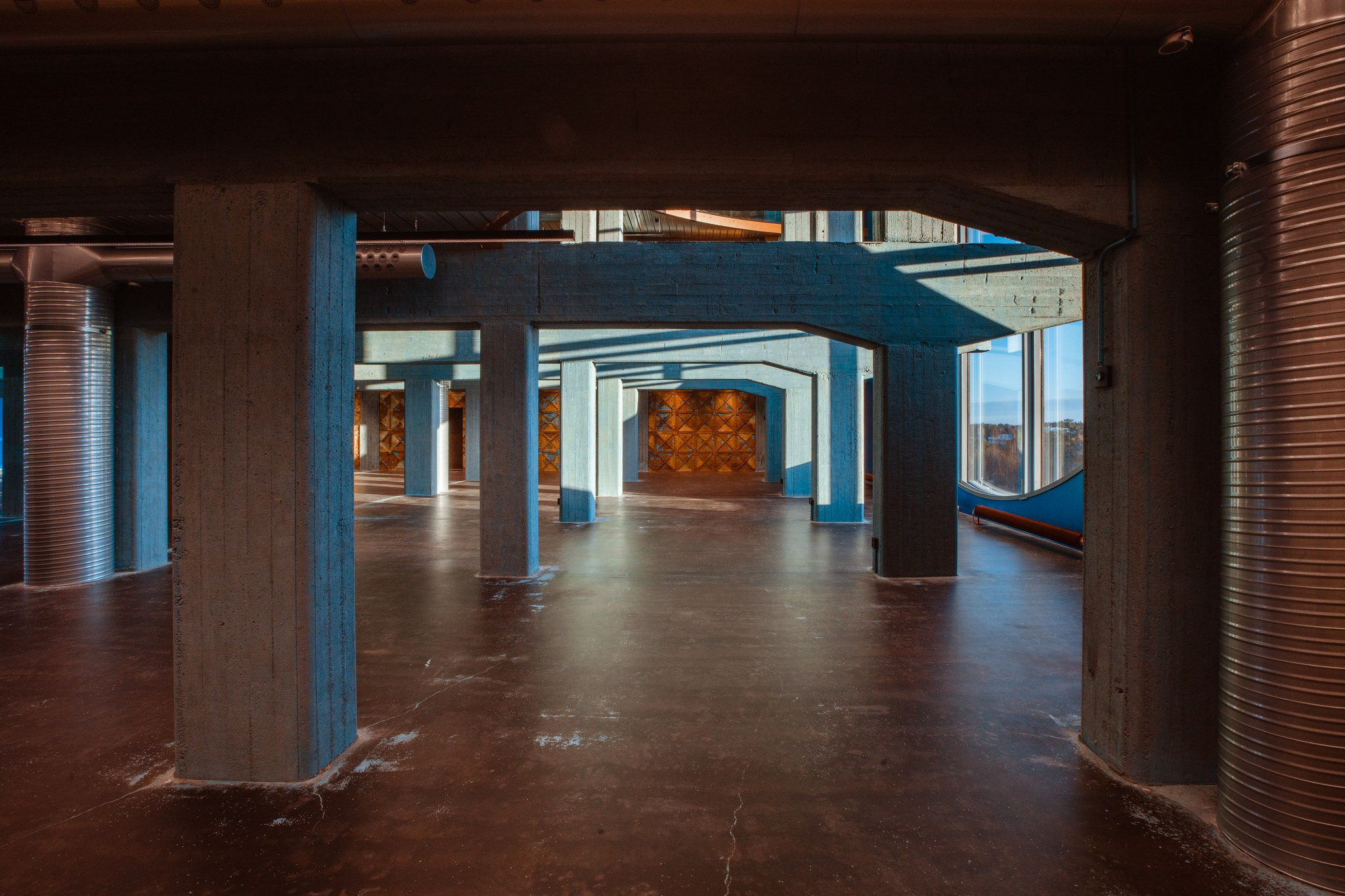 12,5 metriset pyöreät ikkunat luovat akvaariomaisen näkymän “vedenalaiseen” yrityskeskukseen. Kerroksissa on erilliset 10 hengen neuvottelutilat.