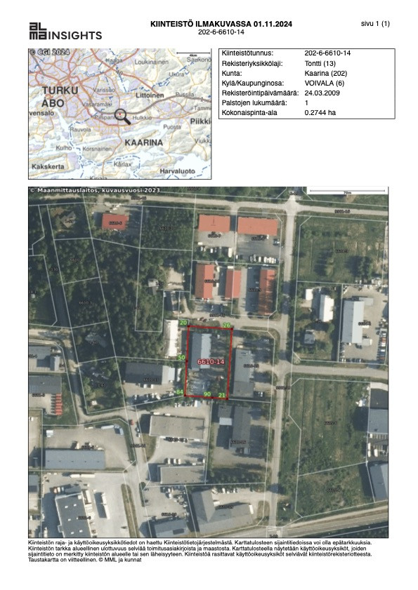 Tontti: Kaarinan Kaupungin vuokratontti, maanvuokrasopimus voimassa 4.9.2055 asti