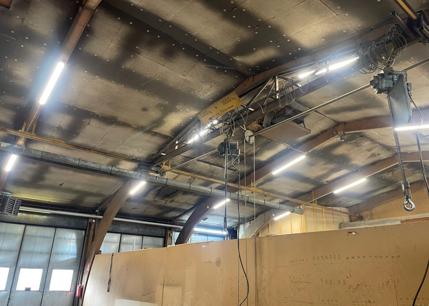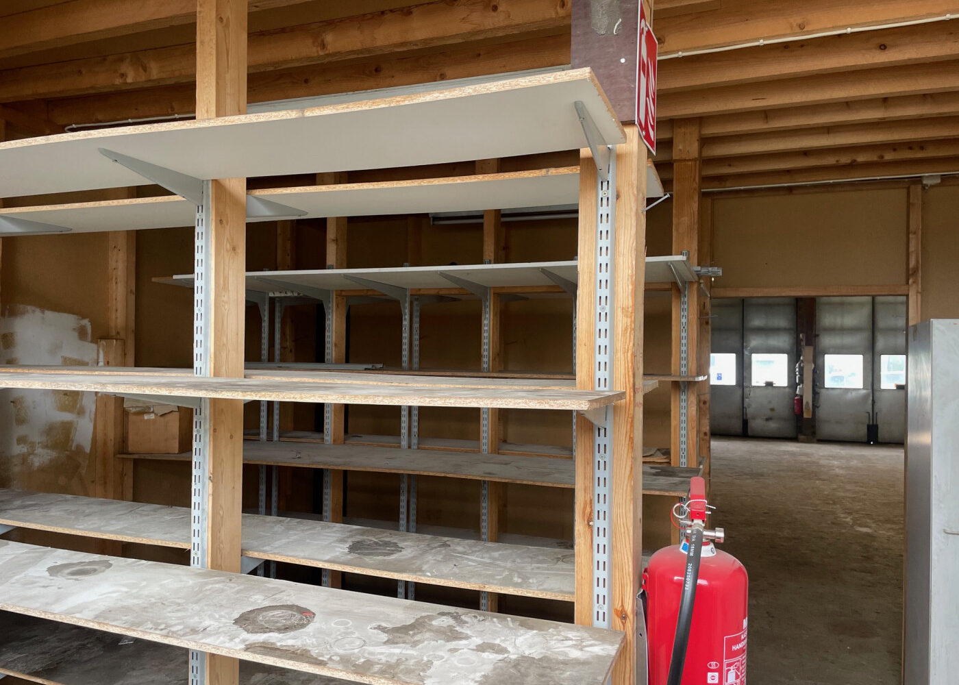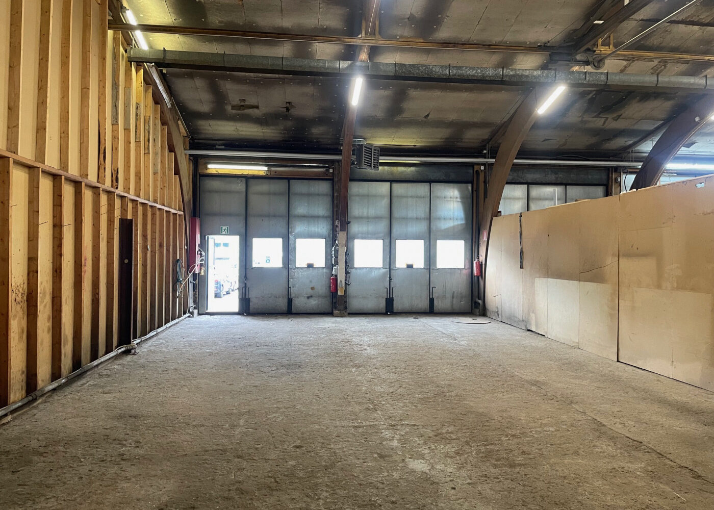 Halliin johtaa kahta isoa taiteovea, leveys 3,5m x korkeus 3,6m. Hallin mitat syvyys 19,8 m x leveys 7,9m.