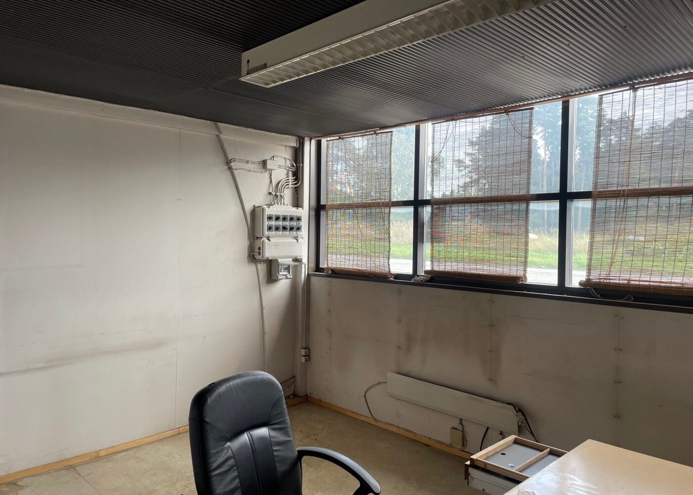 Tilassa pieni toimisto huone, hallissa vesipiste mutta ei keittiö- tai wc-tilat.