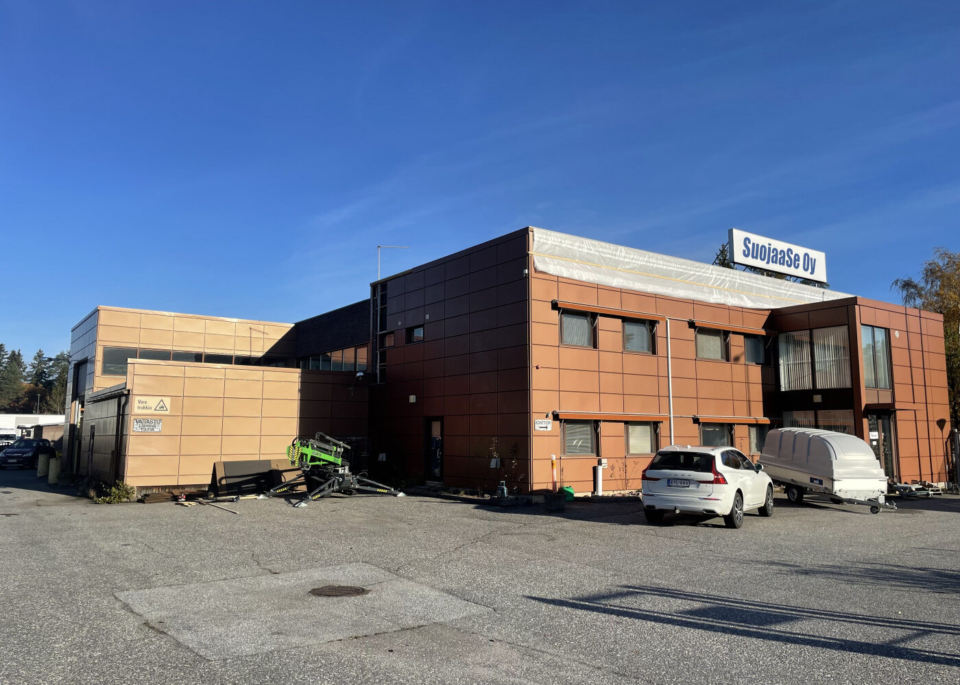 Tilakokonaisuus, jossa noin 6,5 metriä korkean hallin lisäksi hallin päädyssä n. 300m2 toimisto- ja sos. tiloja kahdessa kerroksessa. Yläkerran toimistossa tällä hetkellä peruskorjaus menossa, valmistuu loppuvuodesta 2024.