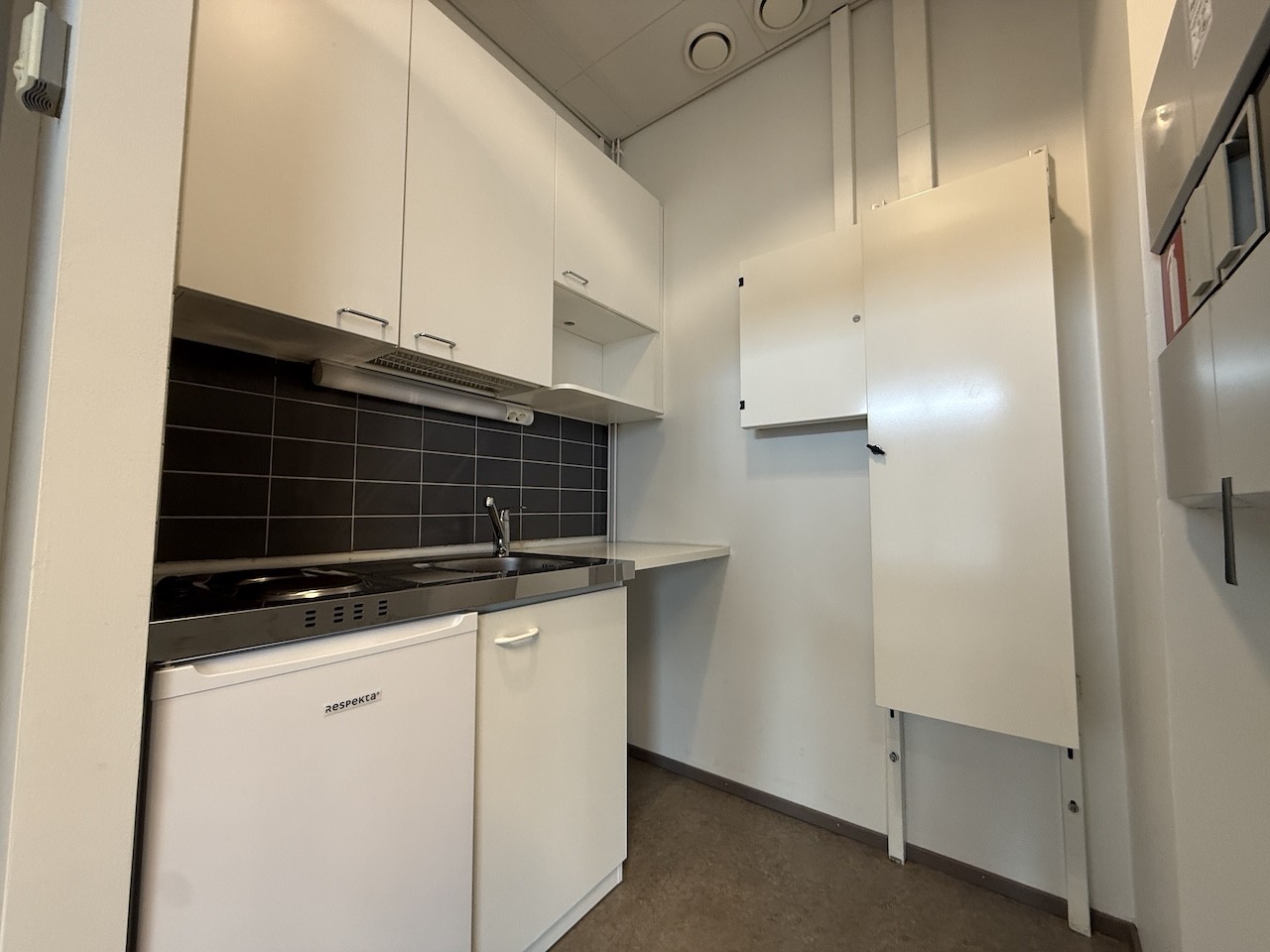 Tilan pohjaratkaisu on erittäin toimiva: se koostuu avarasta avotilasta sekä kahdesta erillisestä työhuoneesta, jotka mahdollistavat rauhallisen työskentelyn tai asiakastapaamiset. Arjen sujuvuutta lisäävät tilava wc-tila, suihku sekä huoneistoon kuuluva kuuden neliömetrin varasto, joka tarjoaa näppärää säilytystilaa tarvikkeille tai arkistolle.