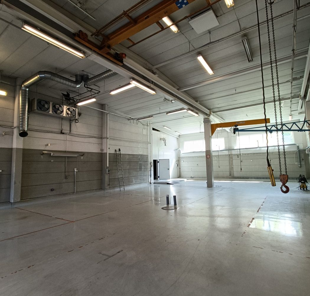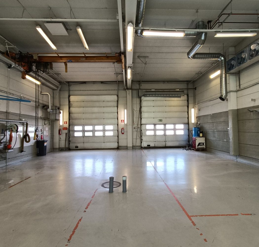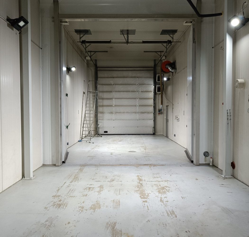 Isomman hallin vapaa korkeus on n. 5 metriä ja sieltä löytyy useampia nostimia, paineilmaverkosto ja kompressori. Nosto-ovia on useampia ja sisään pääsee ajamaan kuorma-autolla. Tilasta löytyy useampia kohdepoistoja, rasvamonttu, lattiakaivot ovien edessä. Toisesta rakennuksesta löytyy lisäksi pakastehalli jossa lämpötilan saa laskettua -40 asteeseen. Kokonaisuudessa on myös oma lähettämö ja kylmää varastotilaa.