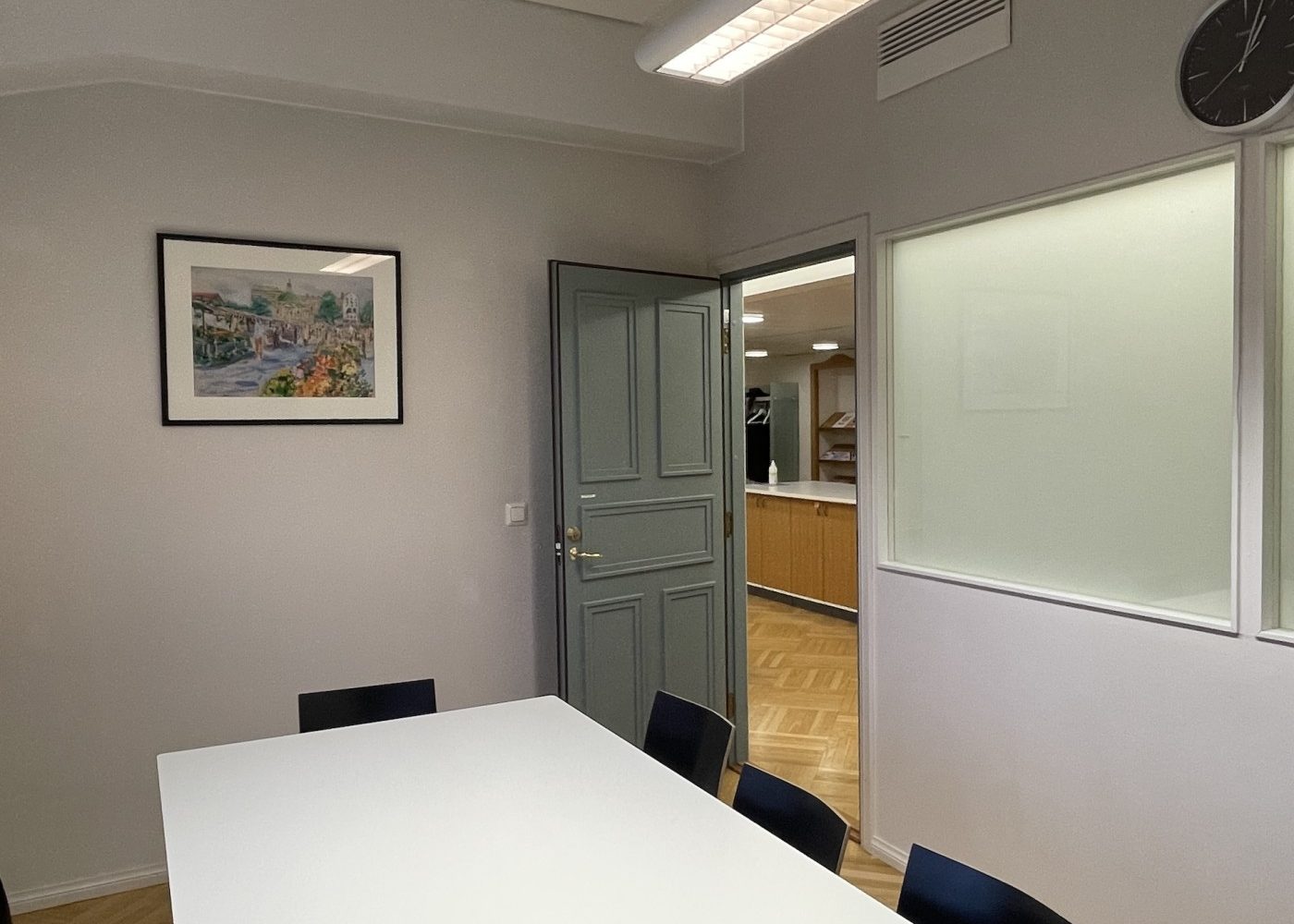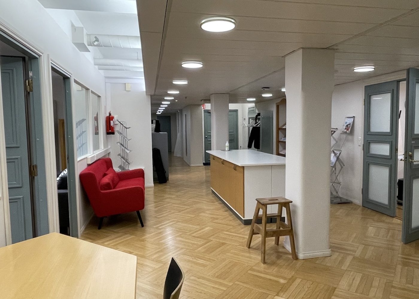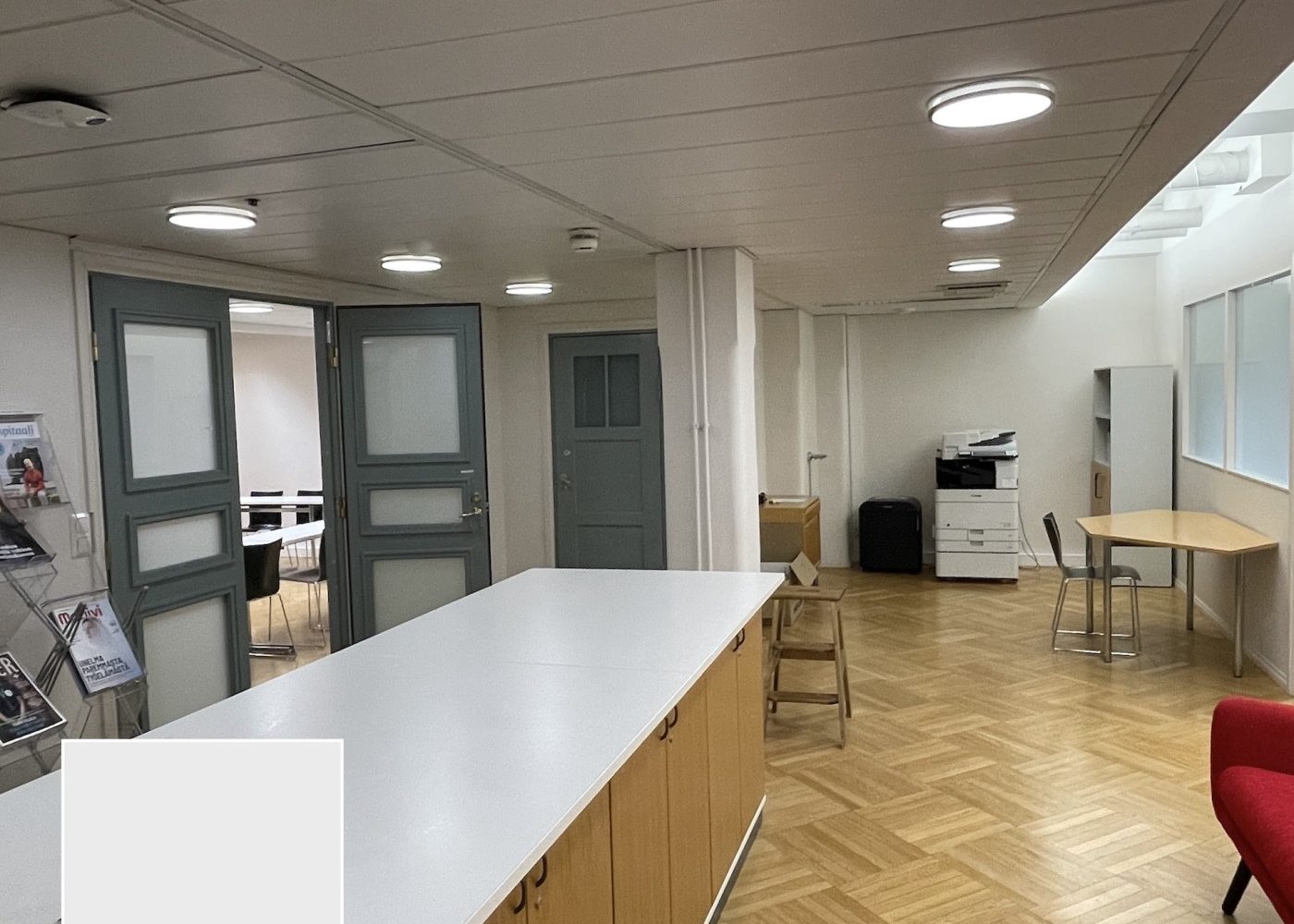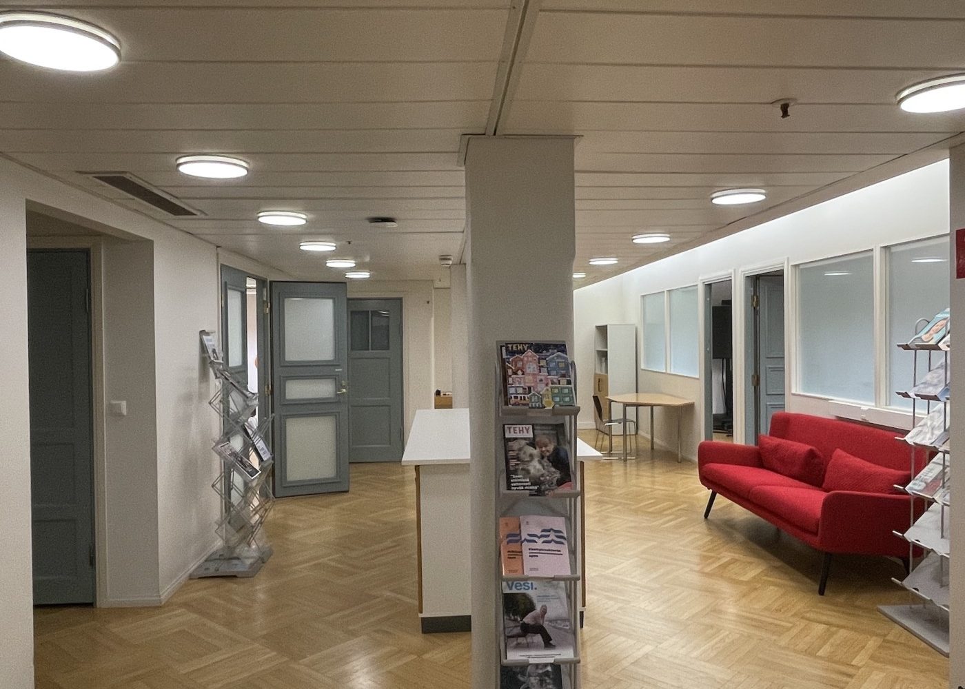 Viihtyisä ja edustava tilakokonaisuus, jossa on aulatilan lisäksi viisi työhuonetta, iso neuvottelu- ja koulutustila sekä keittiö. Tiloissa on kaksi wc:tä, joista toisessa on suihku.