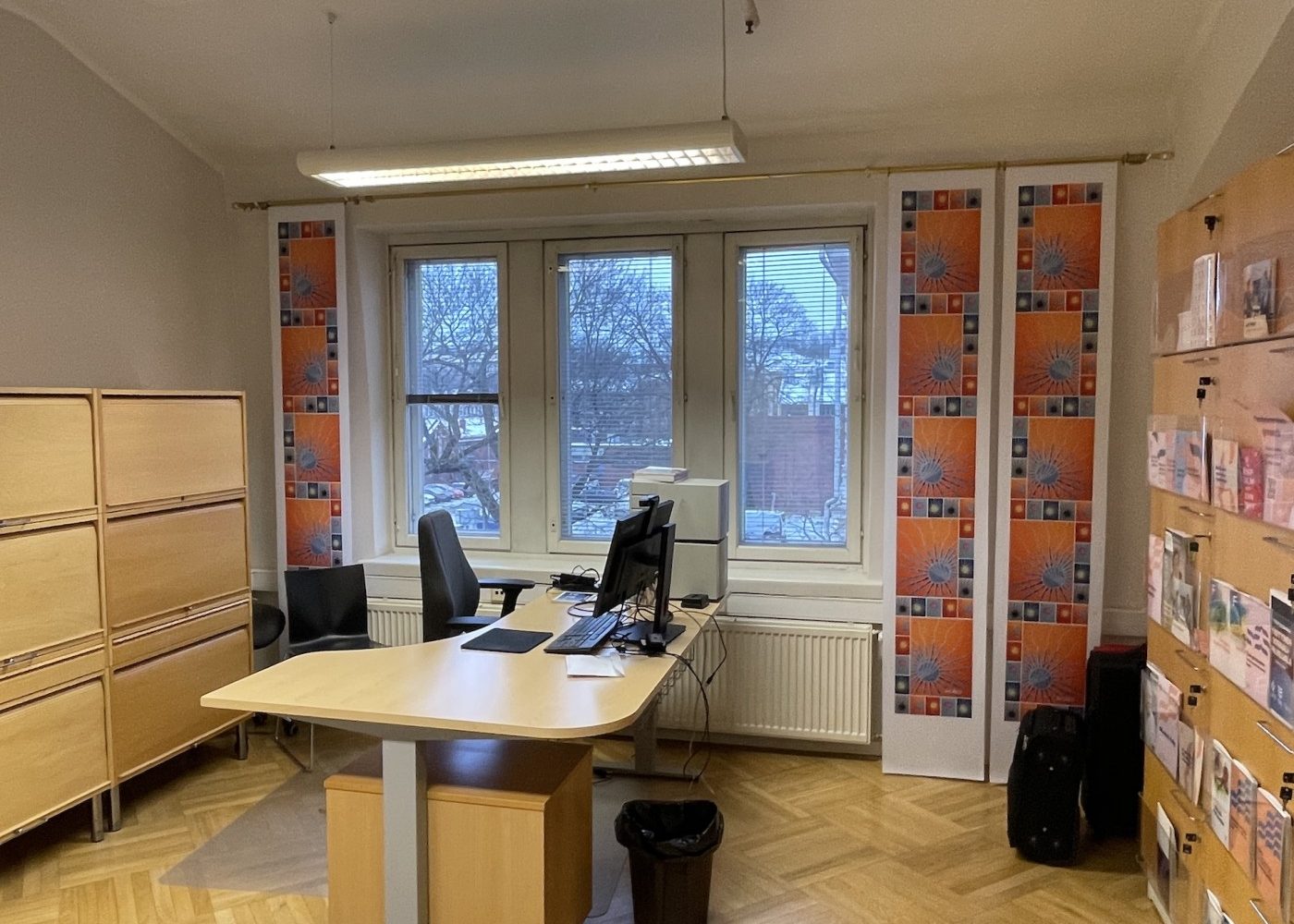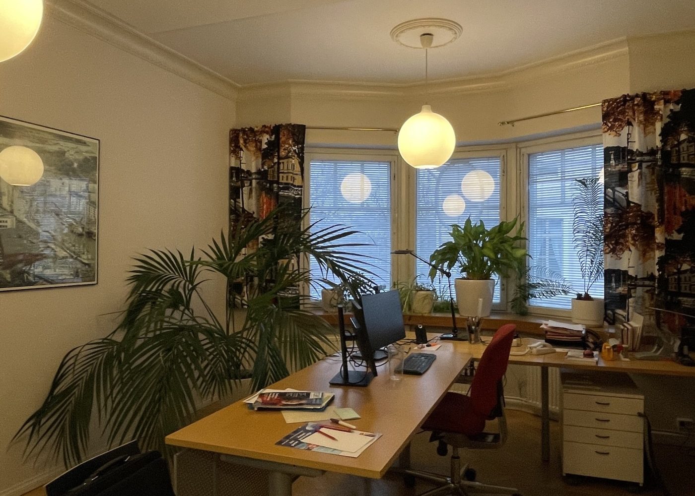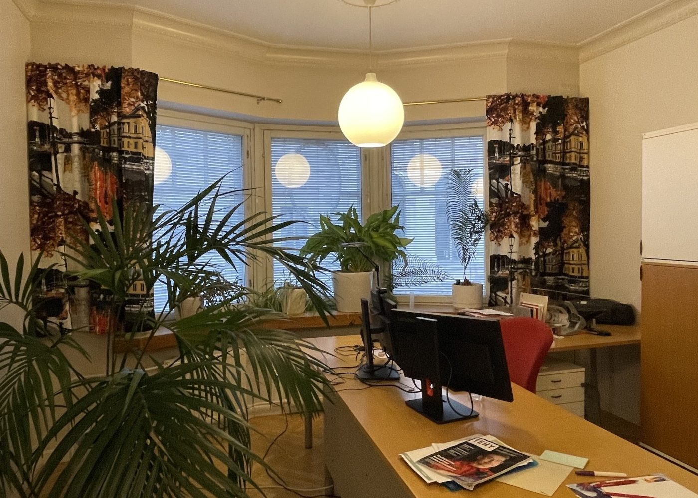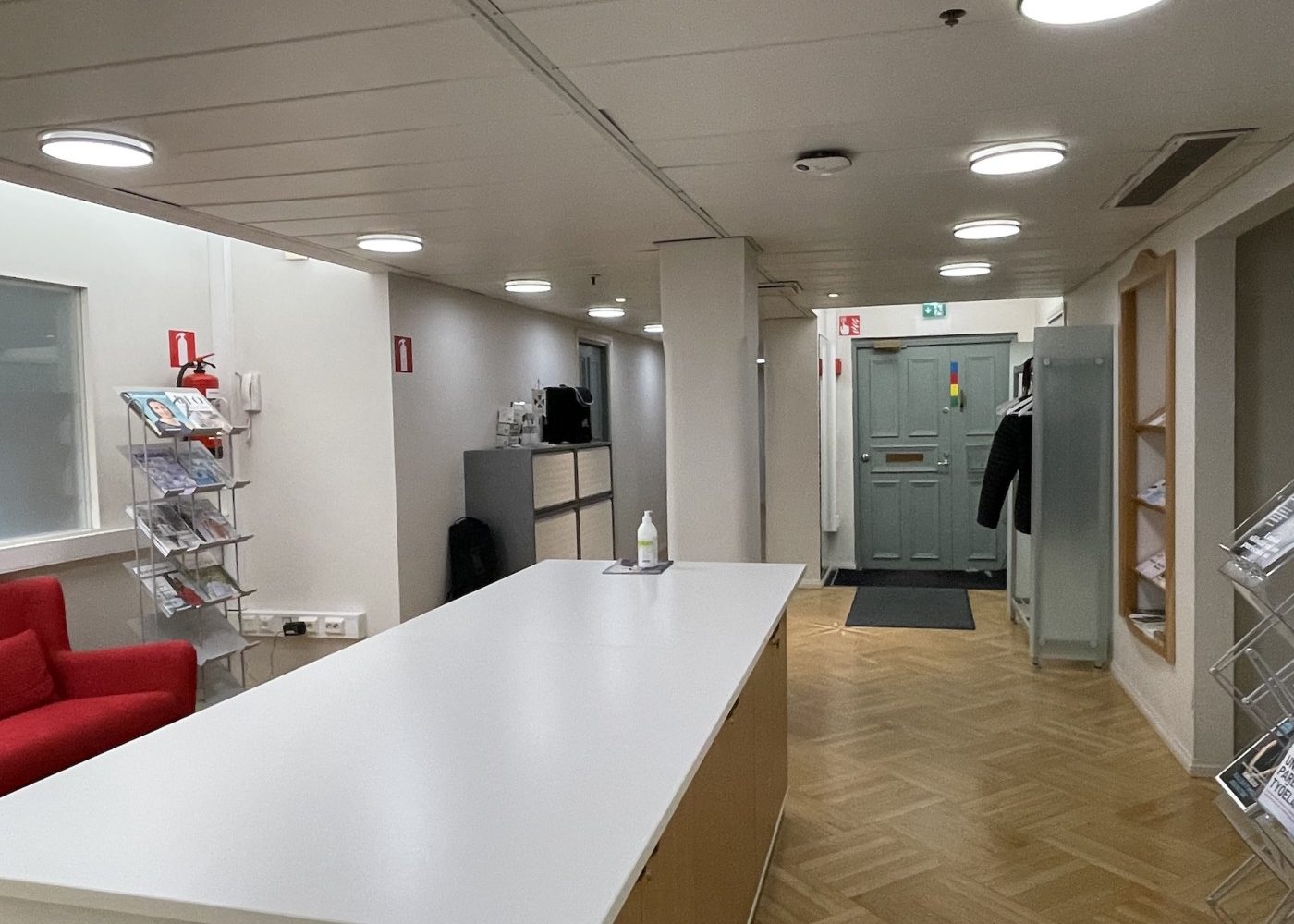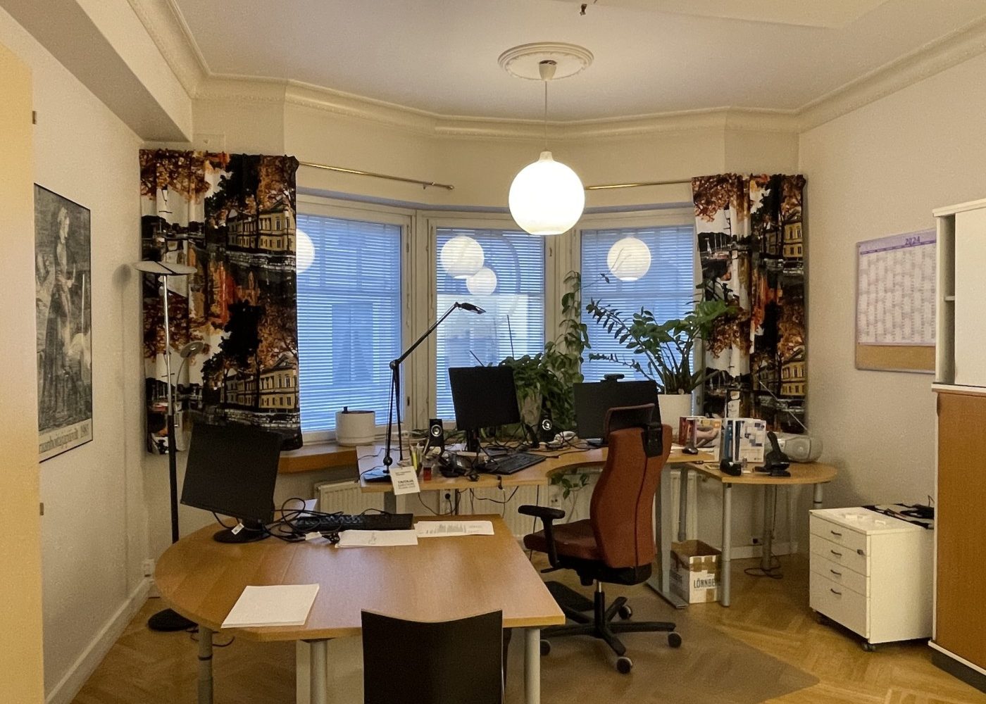 Viihtyisä ja edustava tilakokonaisuus, jossa on aulatilan lisäksi viisi työhuonetta, iso neuvottelu- ja koulutustila sekä keittiö. Tiloissa on kaksi wc:tä, joista toisessa on suihku.