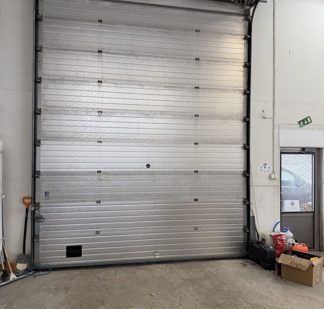 Hallitilan mitat ovat noin 15,5 m x 16,5 m, ja reilu 5,2 metrin vapaa korkeus mahdollistaa tehokkaan hyllytyksen ja tilankäytön. Sisäänkäynti on vaivatonta suuren nosto-oven kautta. Huomioithan, että hallitilassa ei ole lattiakaivoa.