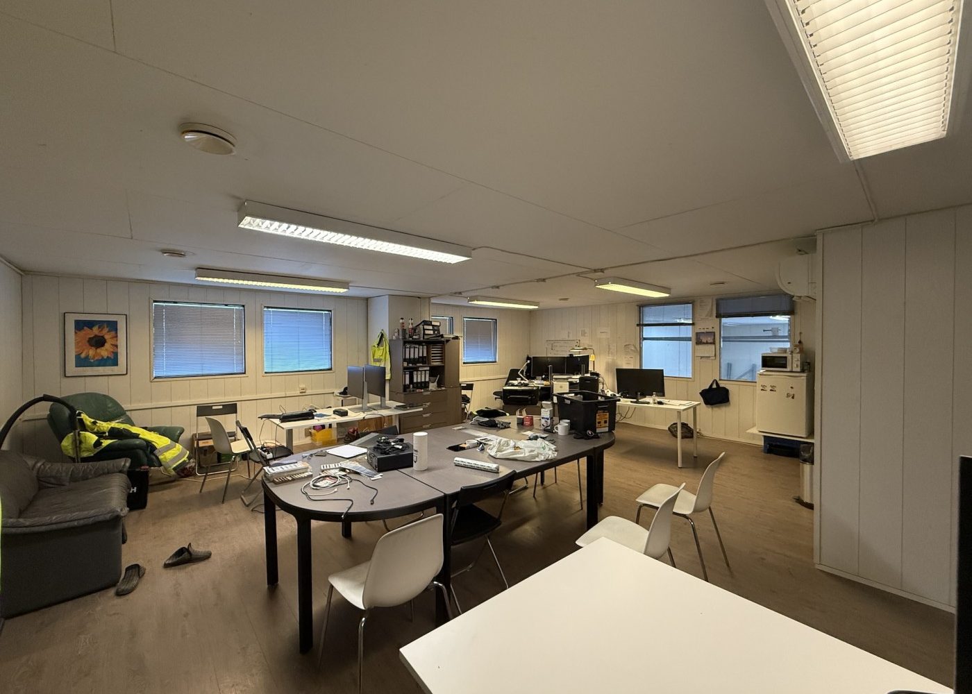 Hallissa on alakerran sosiaalitilat, joista löytyvät sekä taukotila ja wc-tilat. Kiinteistön yläkerrassa on lisäksi valoisa, noin 55 m² avotoimisto.