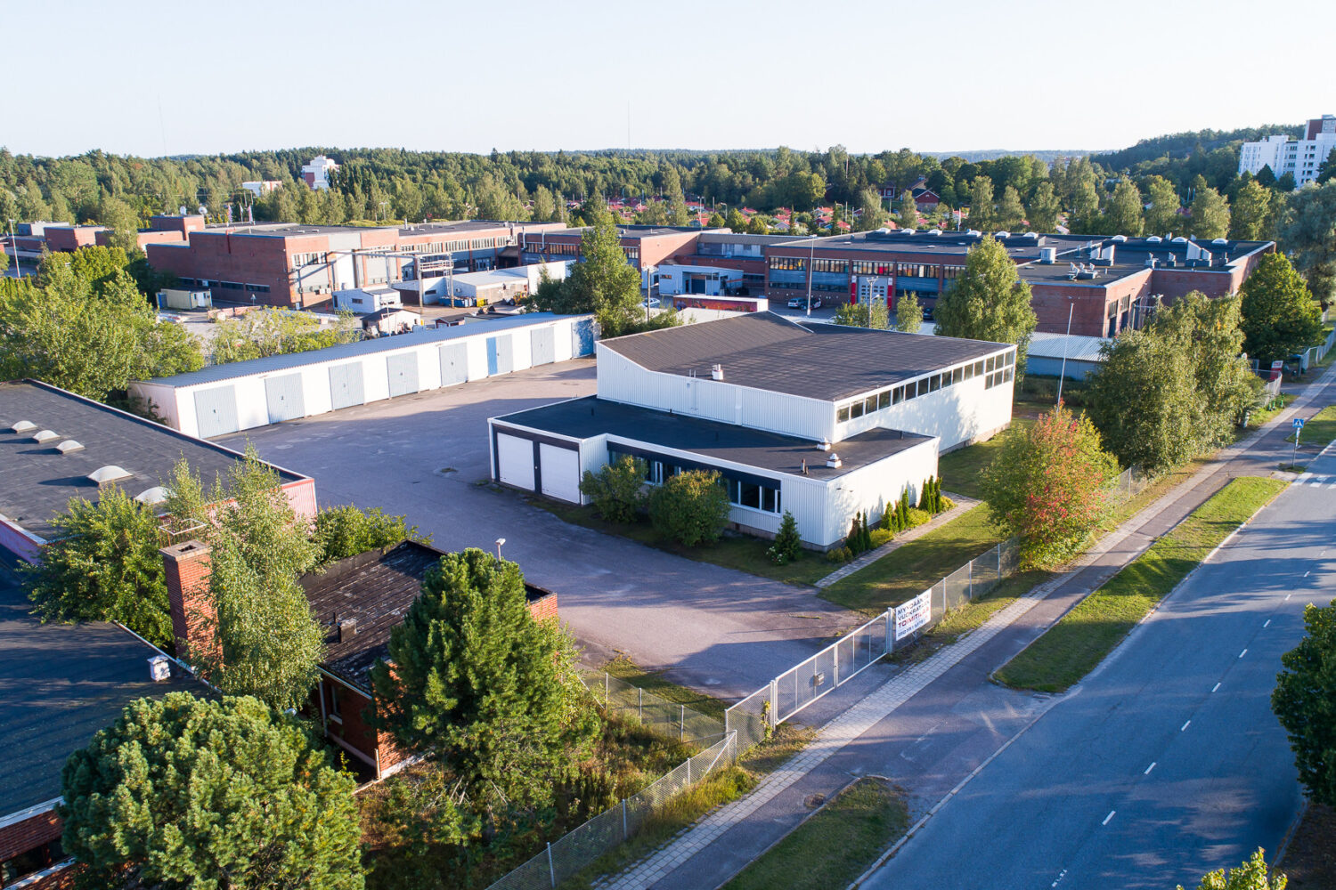 Kiinteistöllä sijaitsee vuonna 1972 valmistunut toimisto- ja varastorakennus. Tilakokonaisuudessa on 650 m² varastotilaa, 140 m² siistiä toimistotilaa ja lisäksi piha-alueella erillinen 400 m² varastorakennus, josta puolet on eristetty lämpimäksi tilaksi.