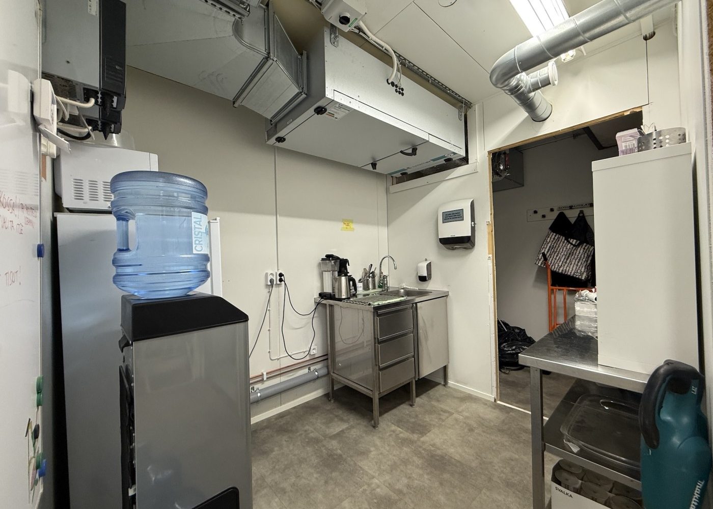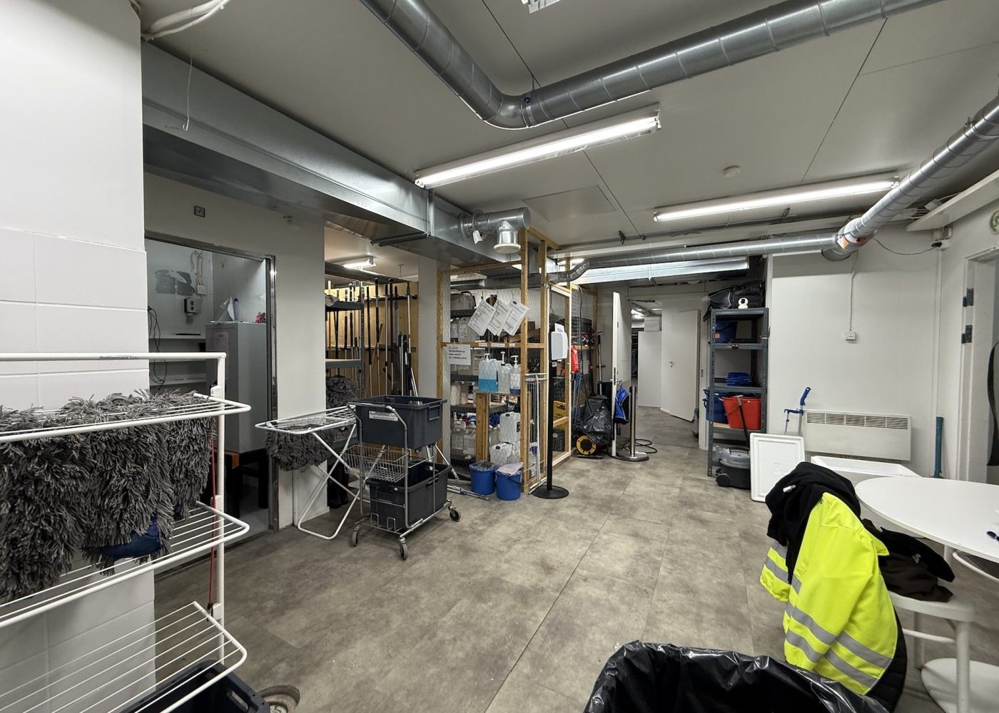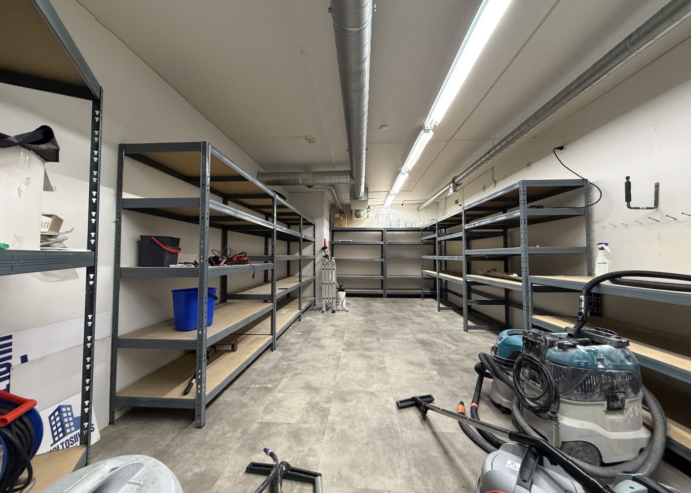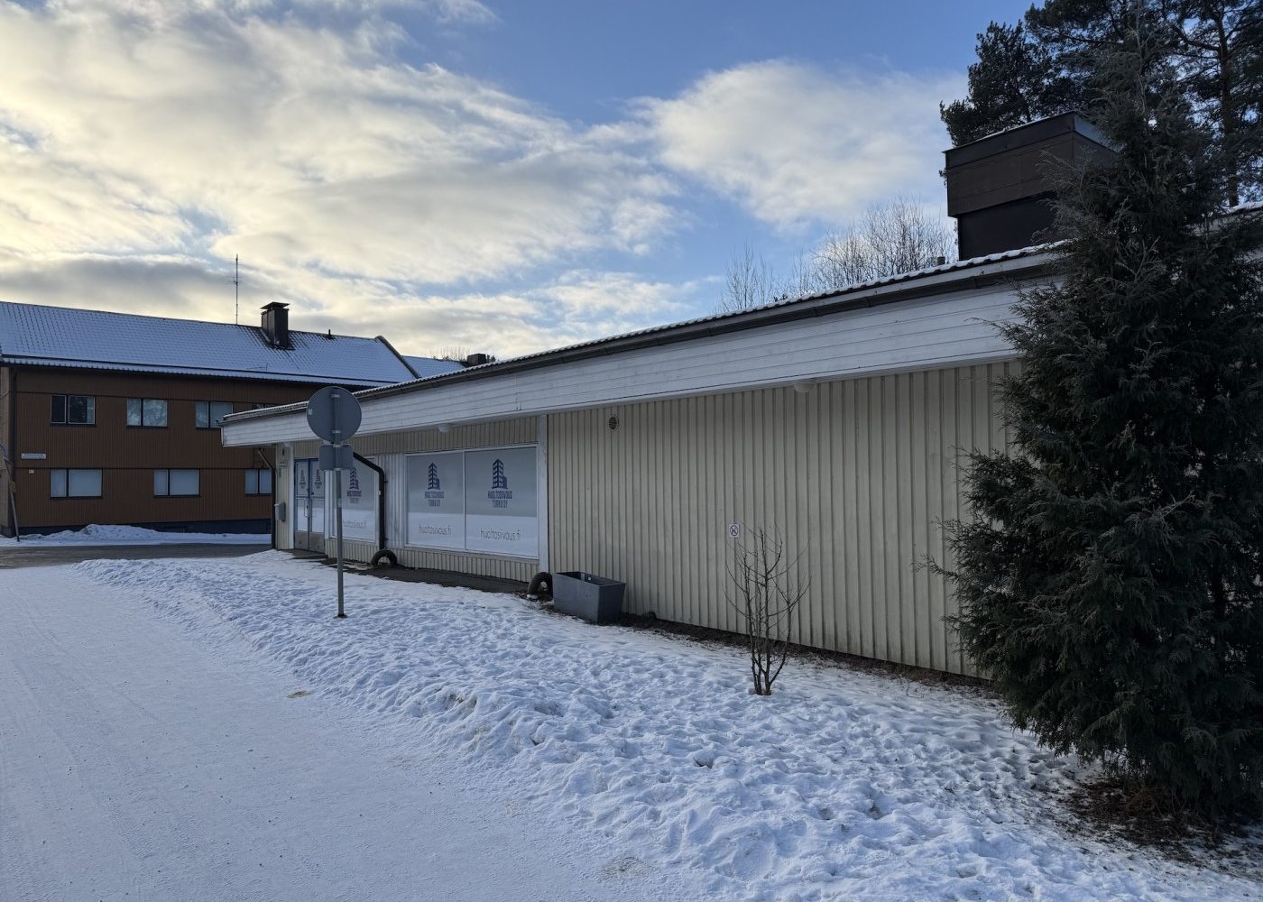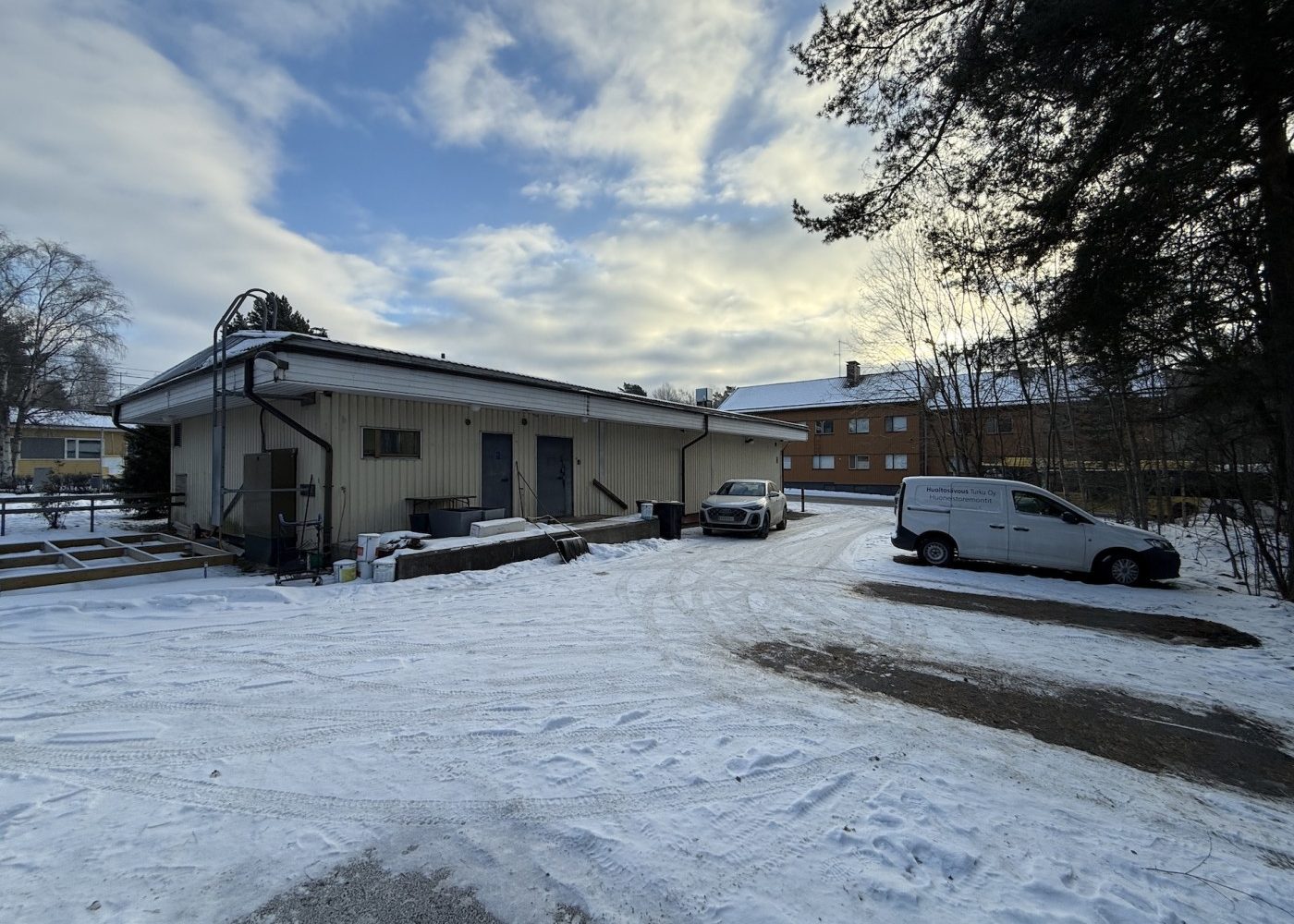Rakennuksen logistiikka on mietitty toimivaksi: julkisivun puolella on asiakaskäyntiovi, ja tavaraliikennettä helpottavat lastaustasolla varustetut pariovet. Tällä hetkellä tilat palvelevat siivousliikkeen tukikohtana, ja niihin on rakennettu toimisto, neuvotteluhuone, kaksi WC-tilaa sekä runsaasti varastotilaa. Tiloja on mahdollista muokata, sillä nykyiset väliseinät on mahdollista poistaa, jolloin tila palautuu alkuperäiseksi, avoimeksi tilaksi. Rakennuksessa on tallella kauppa-aikaiset kylmiötilat, jotka tarjoavat valmiin pohjan esimerkiksi elintarvikealan toimijan tarpeisiin.