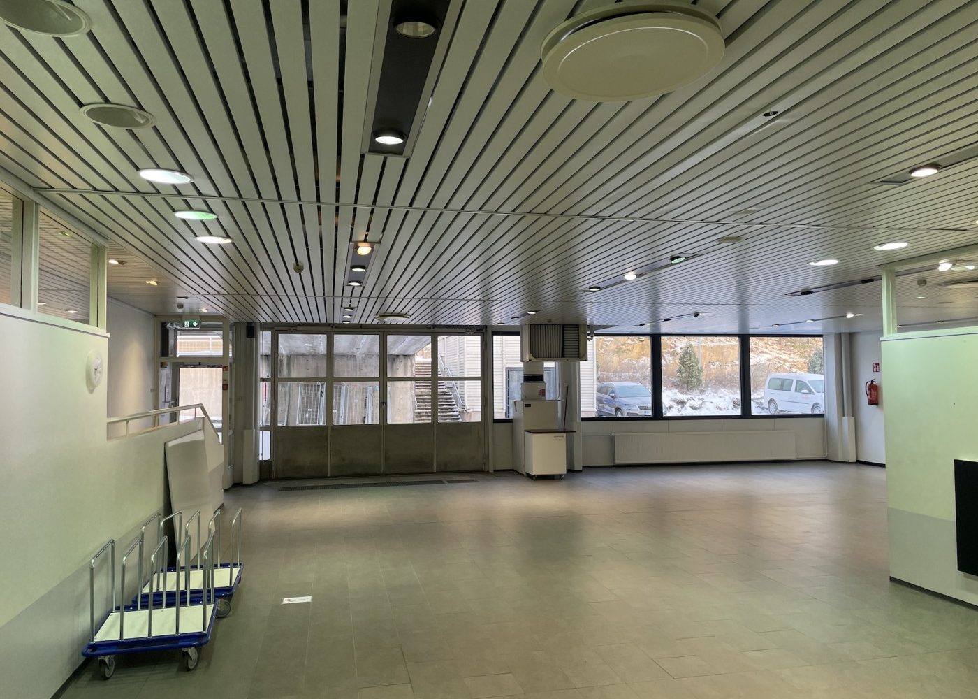 Tilakokonaisuus koostuu isosta avotilasta, johon pääsee tarvittaessa autolla sisään. Lisäksi tiloissa on pääosin lasiseinin varustettuja työtiloja sekä iso neuvottelu- ja koulutustila. Tiloista löytyy myös pieni taukokeittiö sekä wc-tilat.