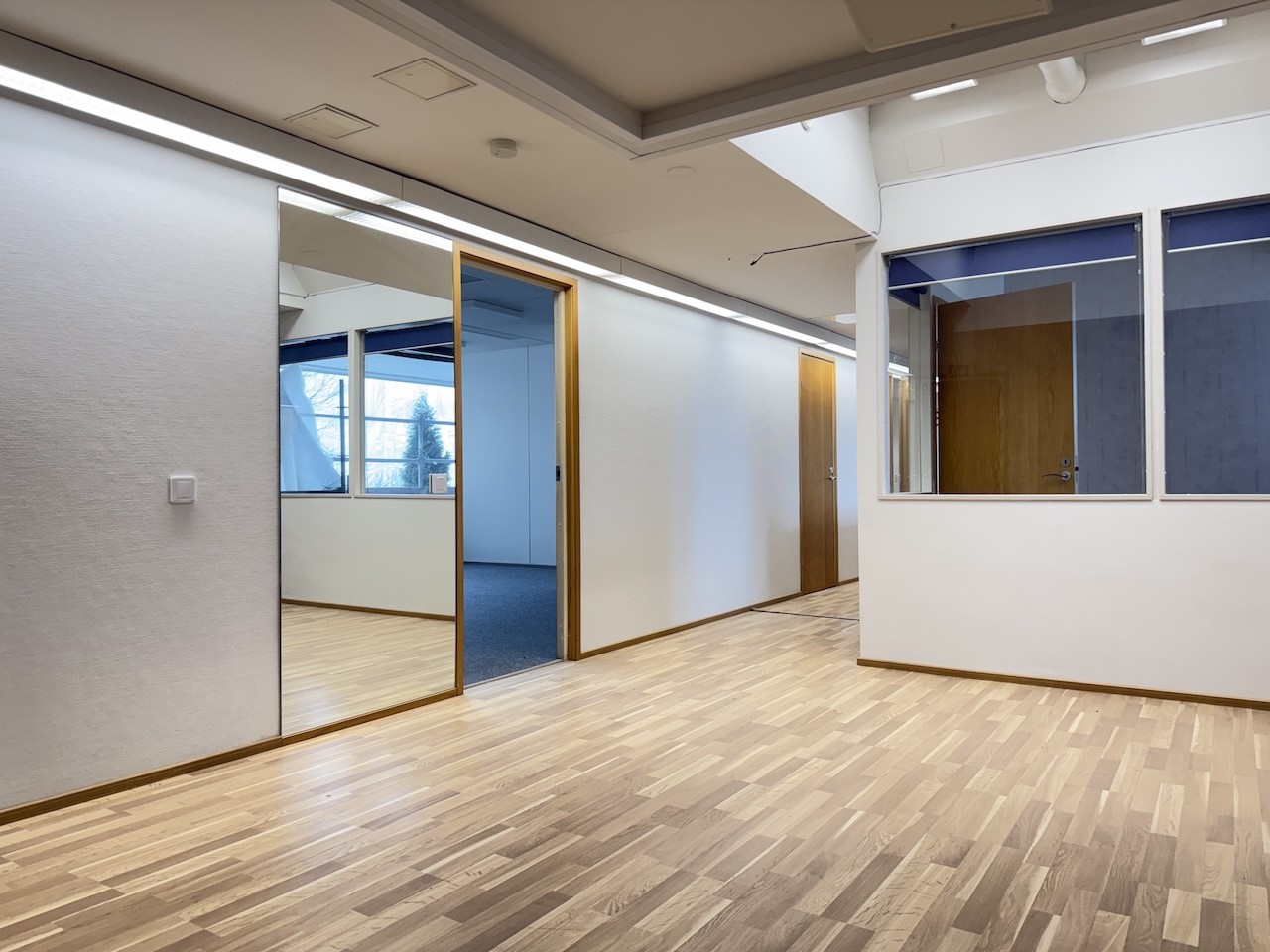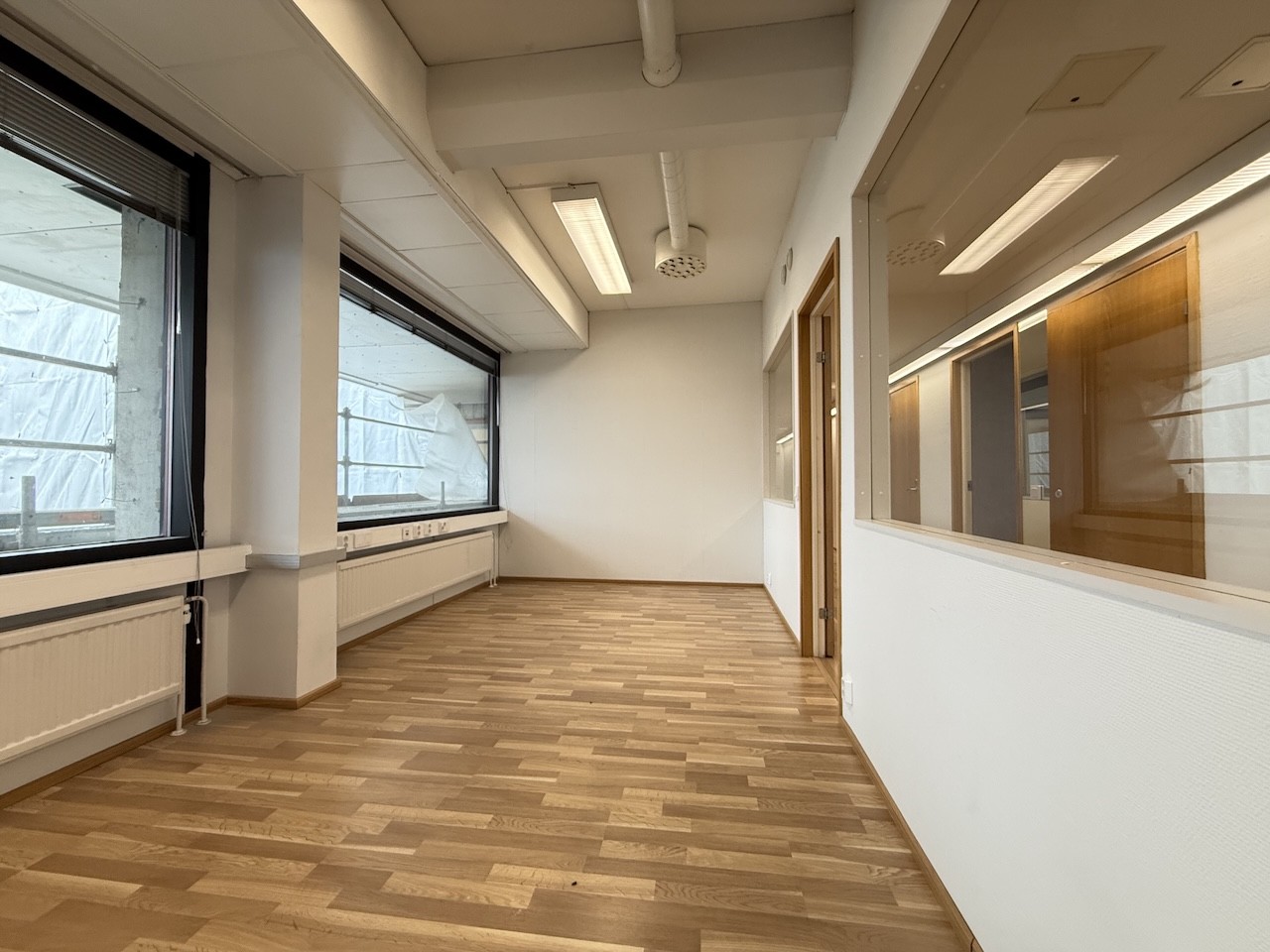 Tila käsittää useita erikokoisia huoneita neuvotteluhuoneista toimistohuoneisiin. Huoneistossa on yksi wc-tila.