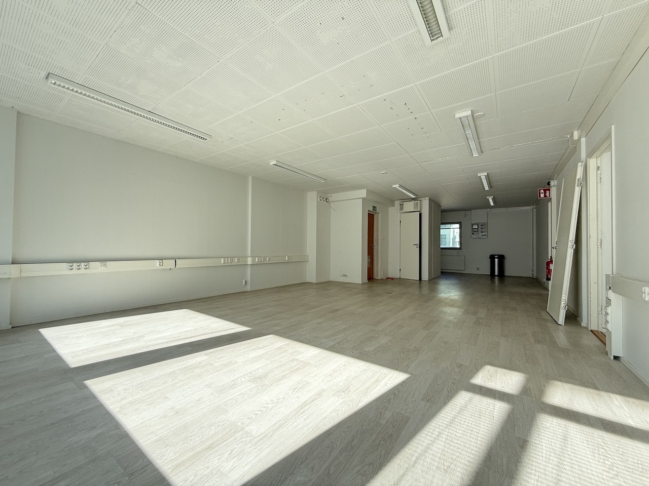 Tämä 59 m² läpitalon huoneisto on tulvillaan luonnonvaloa, mikä luo viihtyisän ja energisen työympäristön. Tilassa on avoin pohjaratkaisu ja se sopii täydellisesti esimerkiksi asiantuntijatiimille tai tyylikkääksi showroomiksi.
