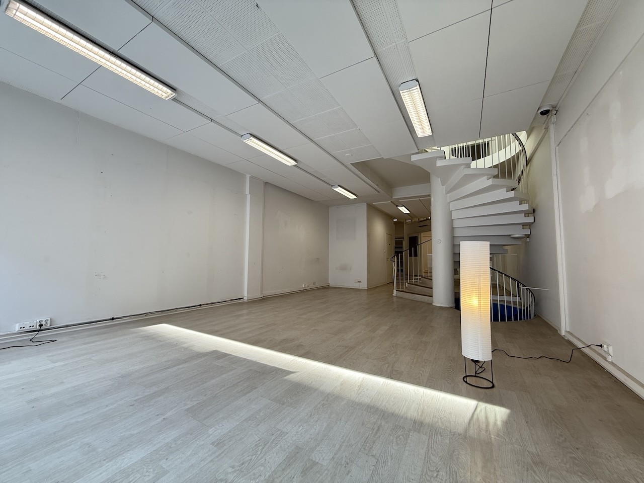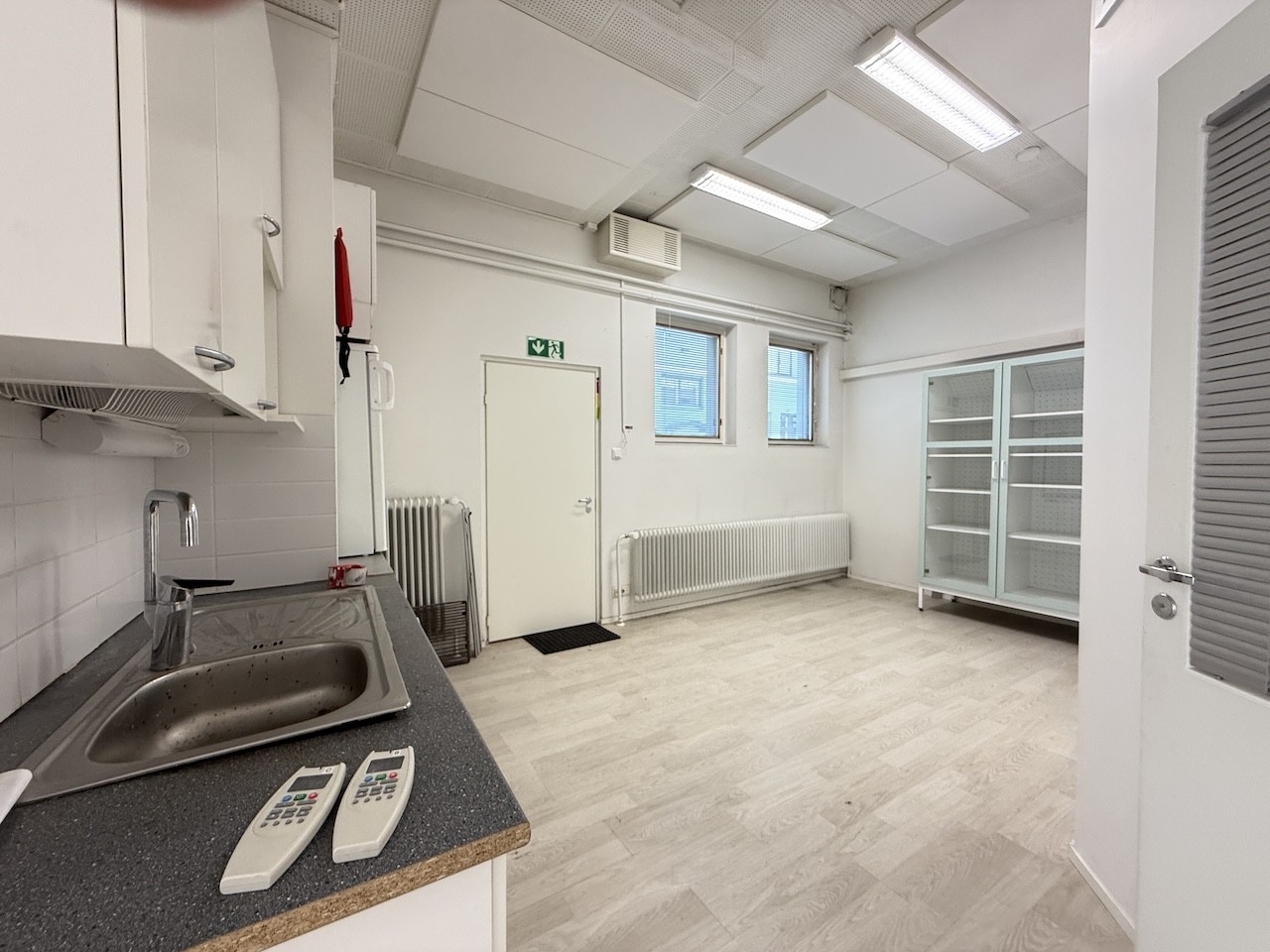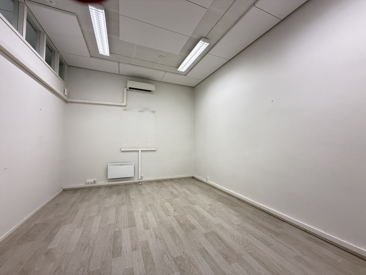 Tila on jaettu kahteen avoimeen osaan, joista toisesta löytyy käytännöllinen pieni keittotila sekä wc-tilat. Lisäksi kellarissa on siisti varastotila. Tiloissa on siistit laminaattilattiat sekä ilmalämpöpumput viilennyskäyttöön.