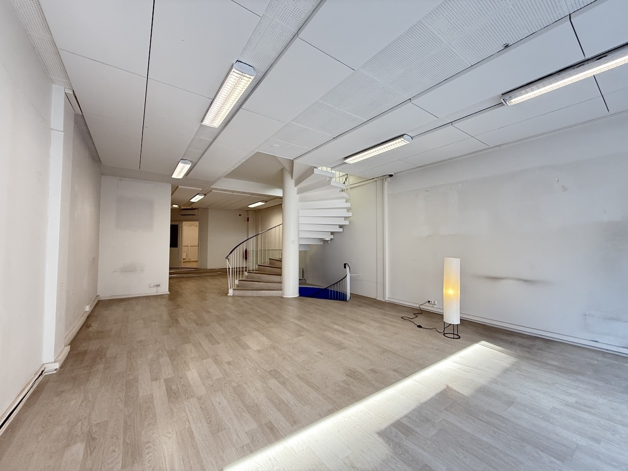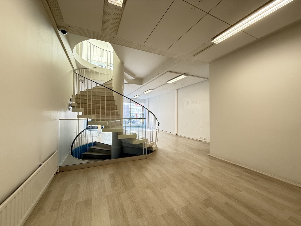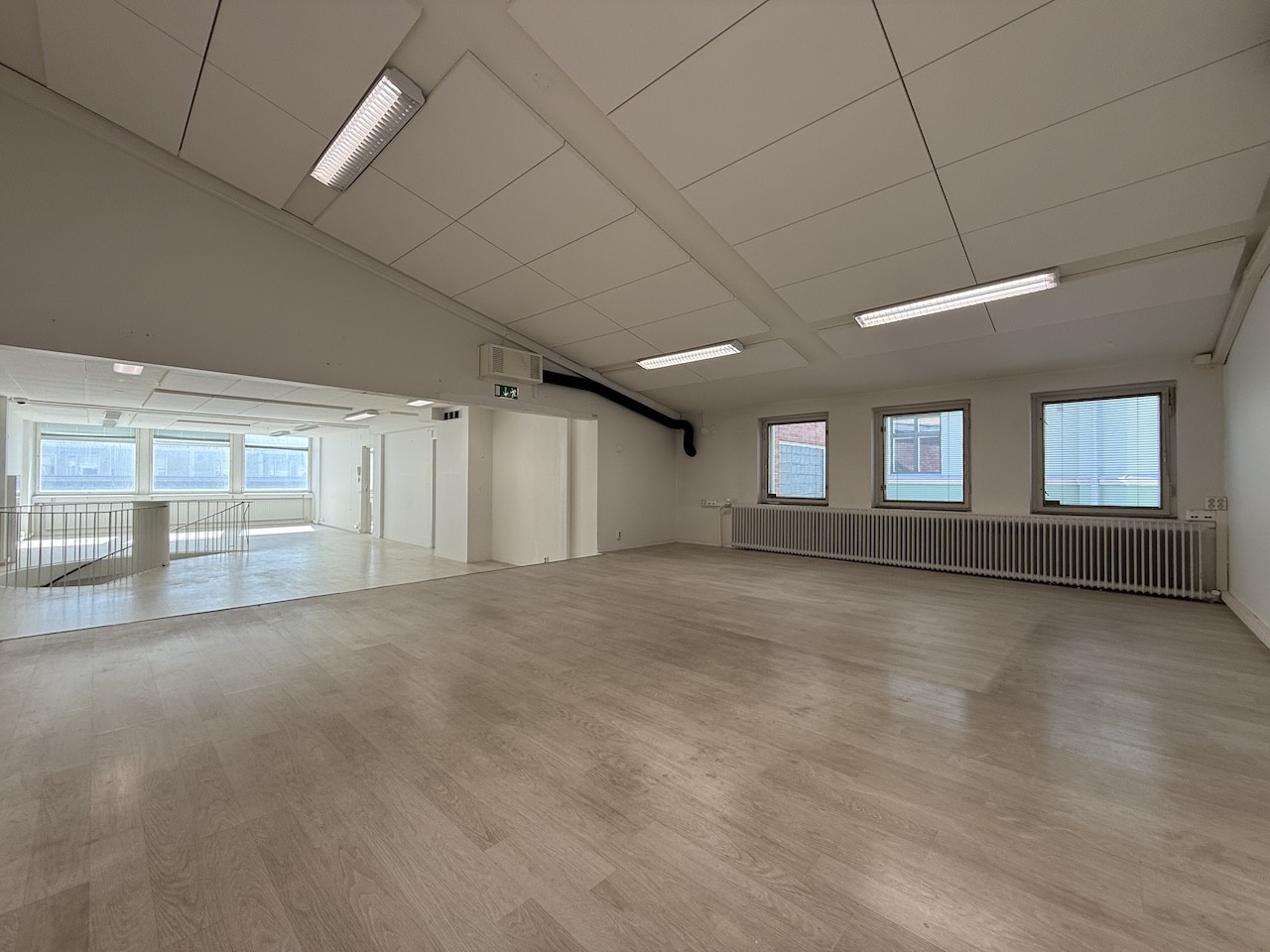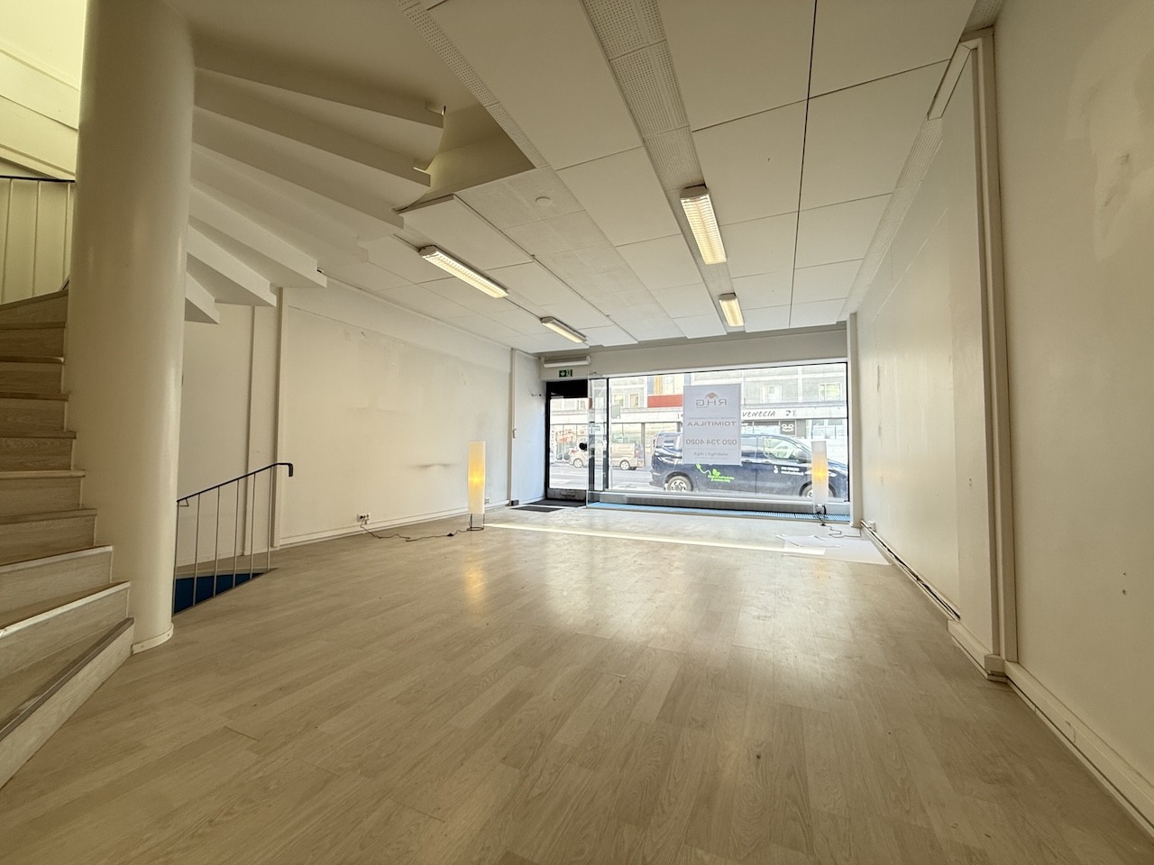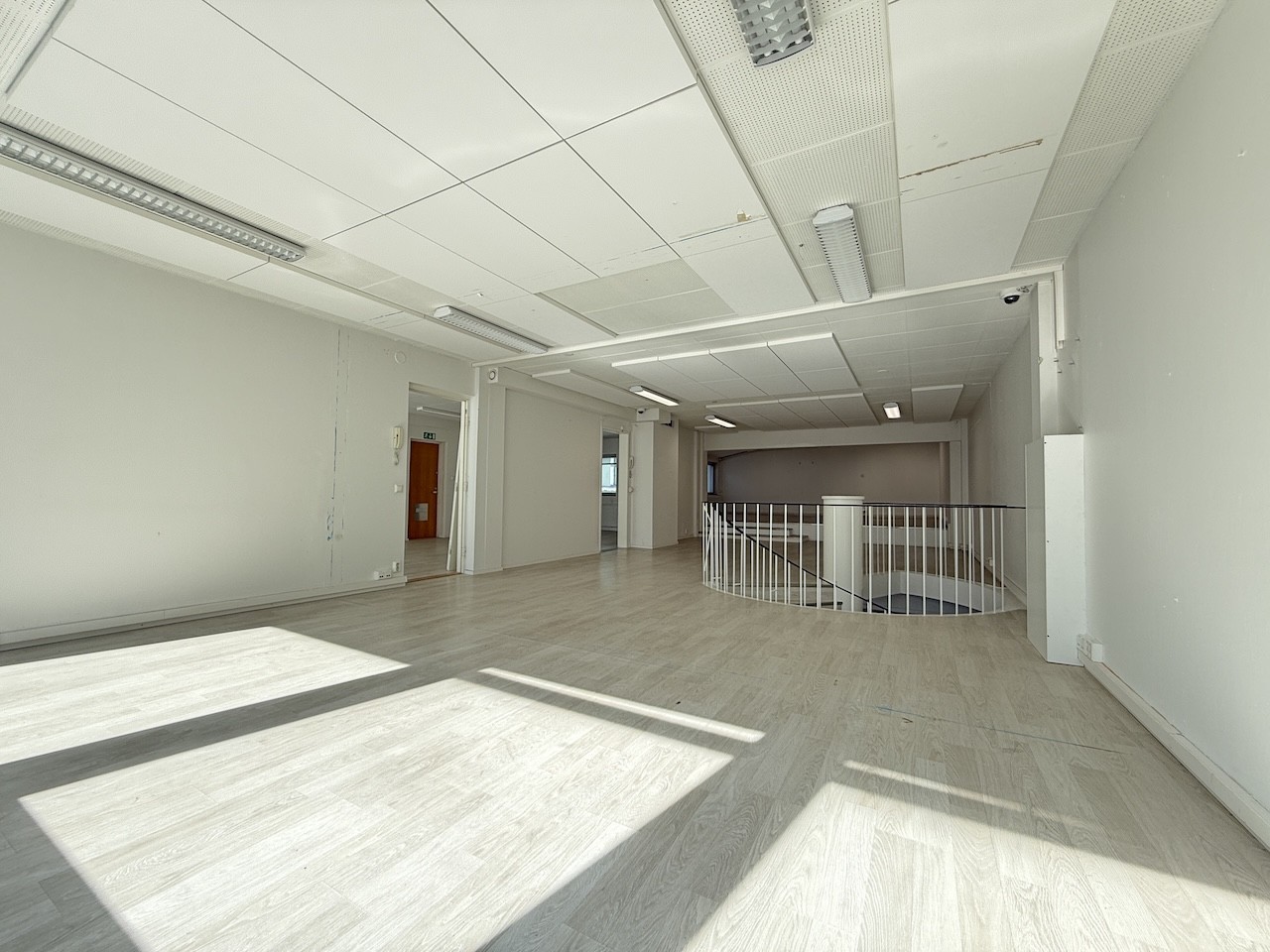 Tilojen välillä on portaat, jotka yhdistävät kaikki tilat toisiinsa. Tiloissa on siistit laminaattilattiat sekä ilmalämpöpumput viilennyskäyttöön.