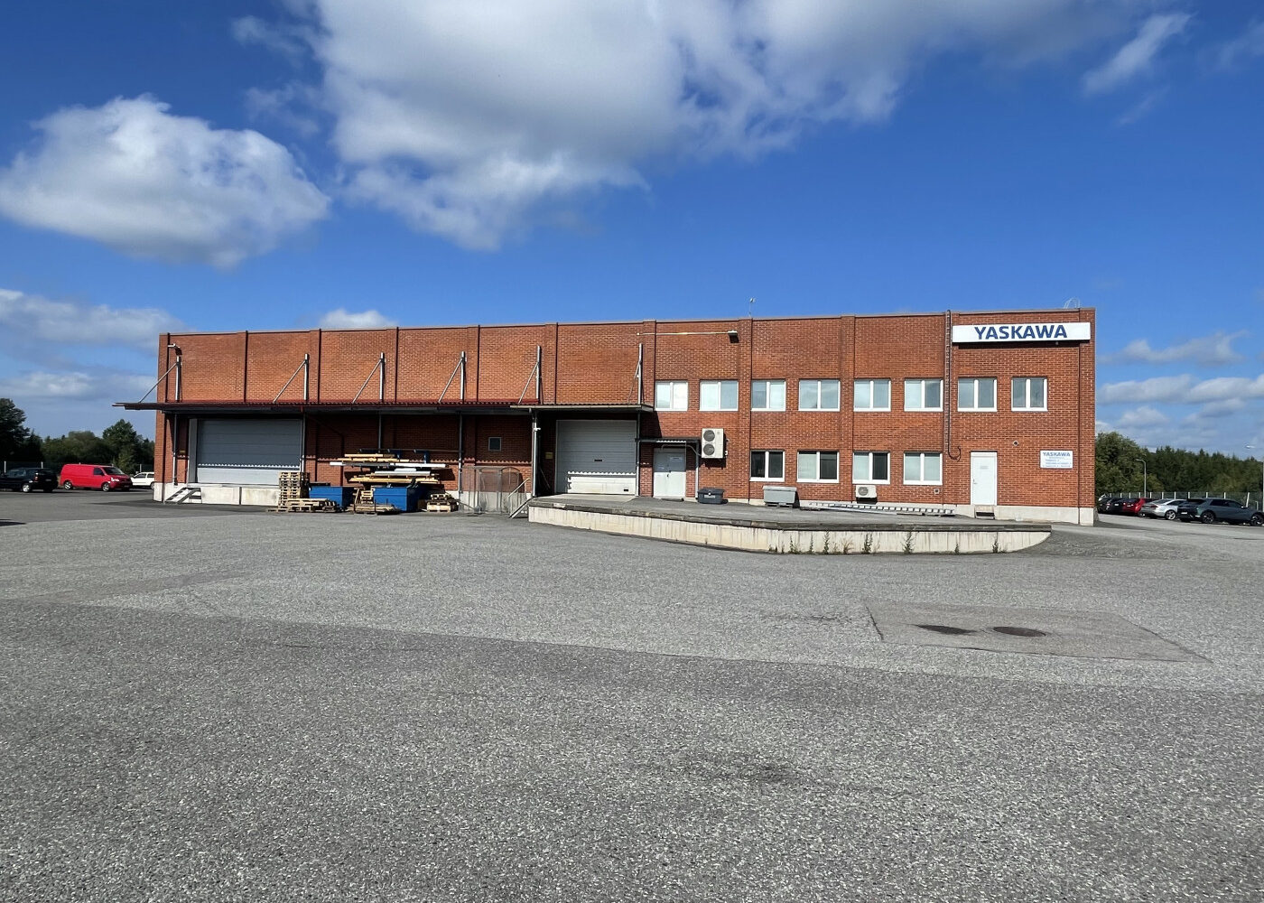 Pienemmän nosto-oven edessä korotettu iso lastaustasanne, toisen isomman oven korkeus maasta noin 1 metri.
