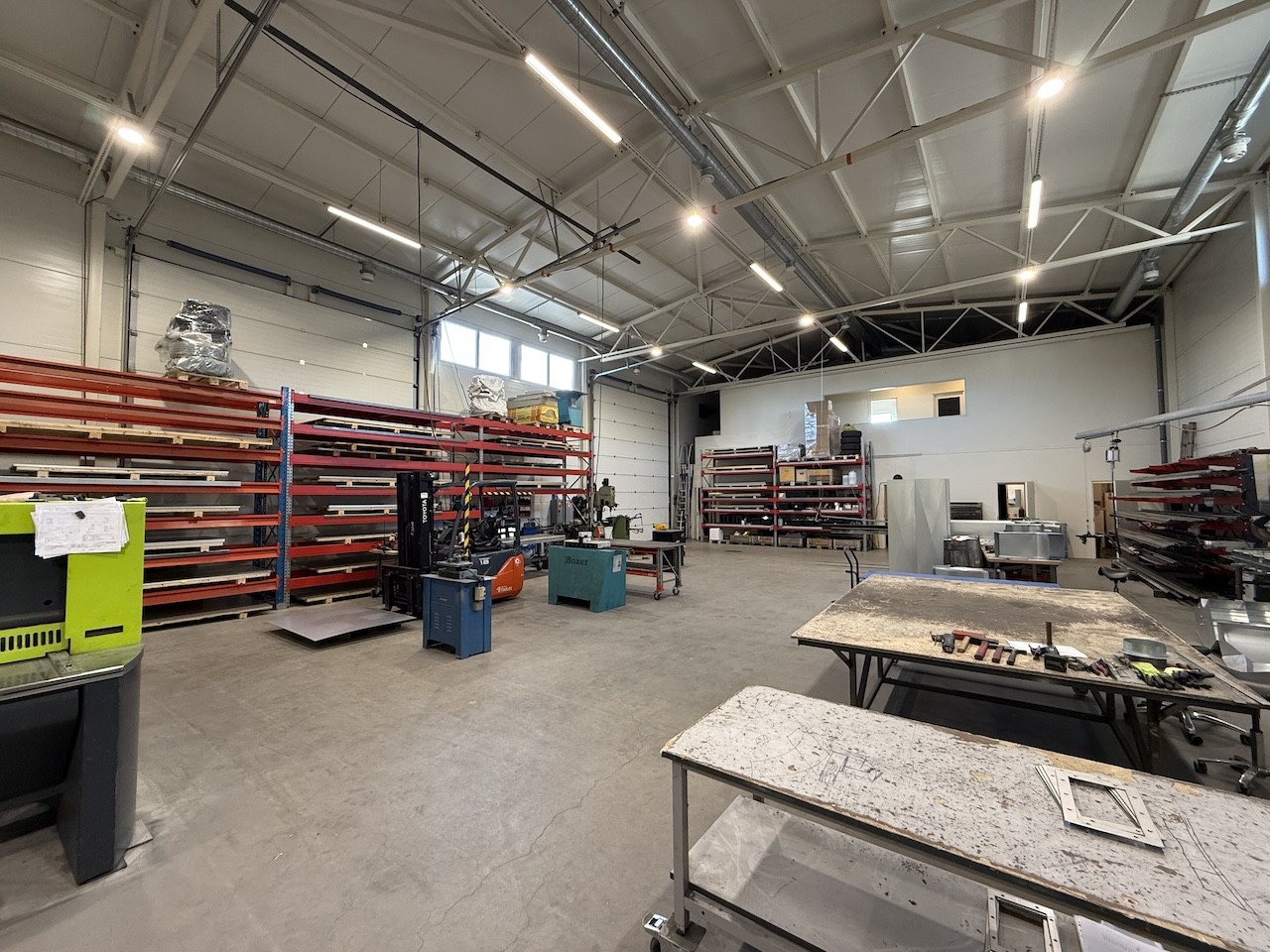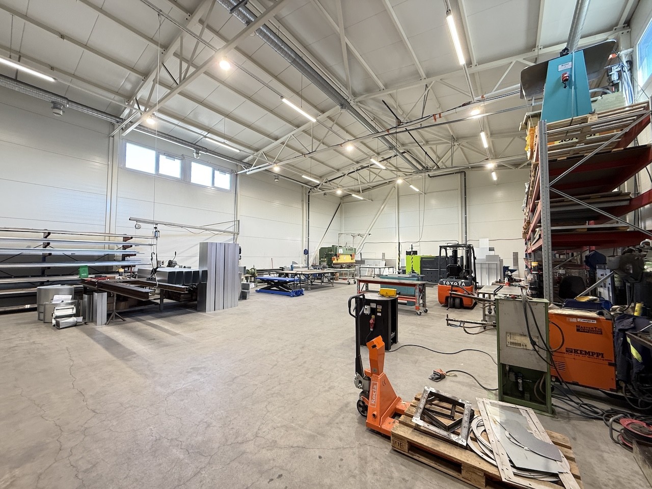Tämä halli ei ole pelkkä varastohalli vaan tilat soveltuvat hyvin myös tuotantoon. Tila soveltuu monenlaiseen käyttötarkoitukseen.