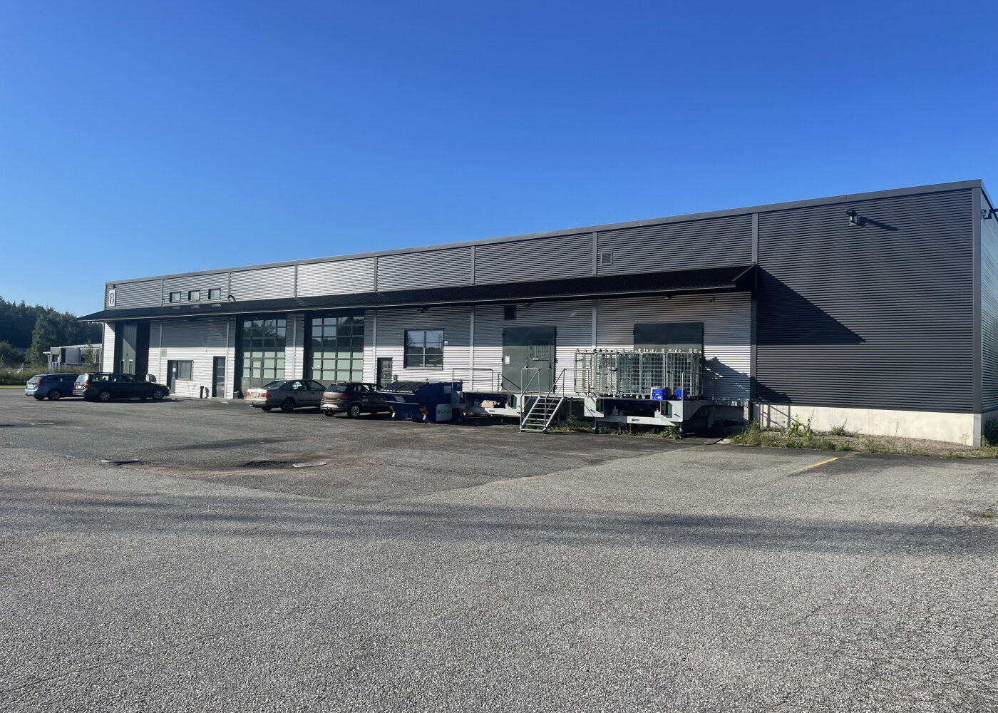 Vapaa korkeus 5 metriä. Hallitilan lisäksi sosiaalitilat. Lastauslaituri, ei maantaso yhteys