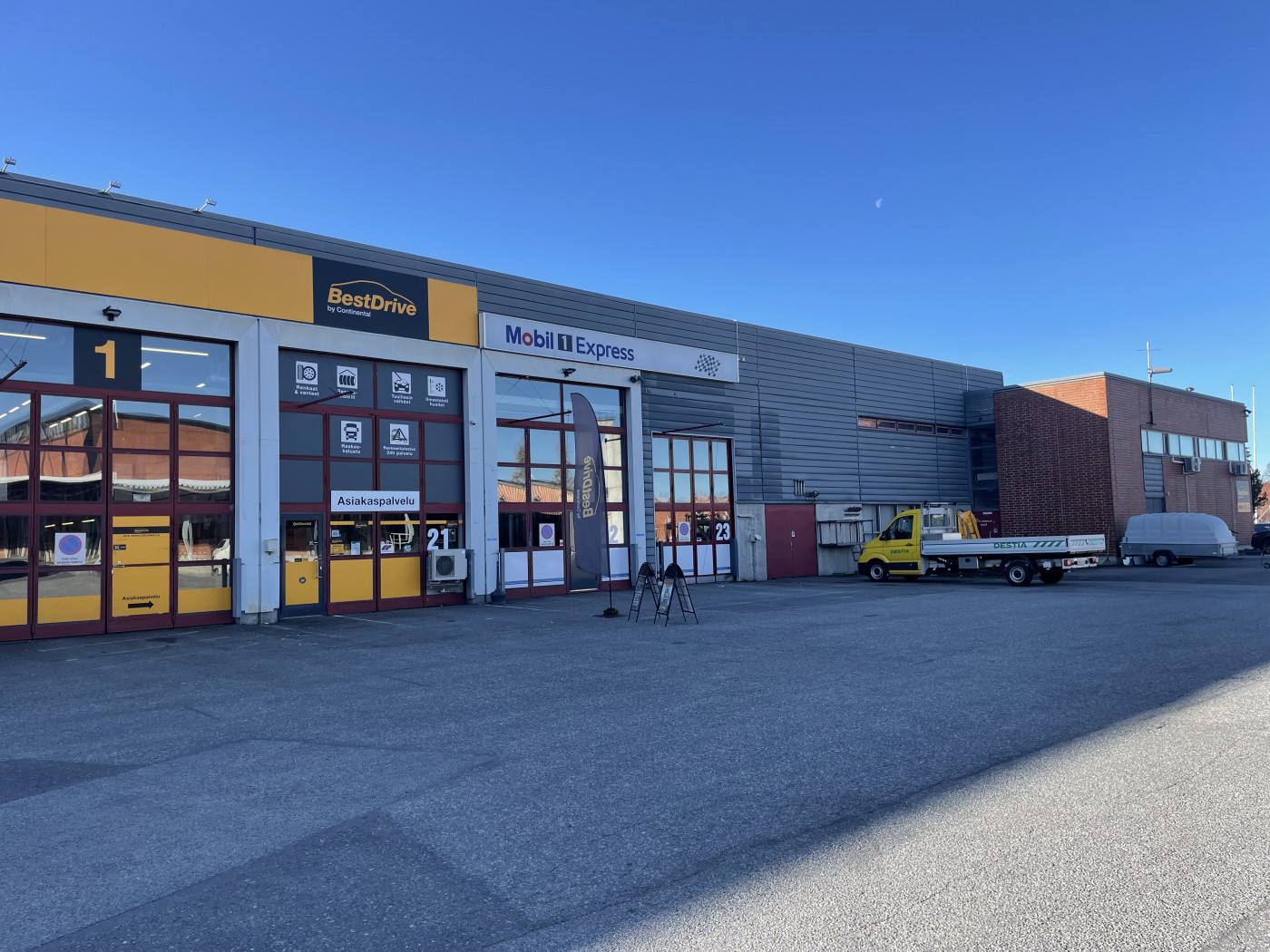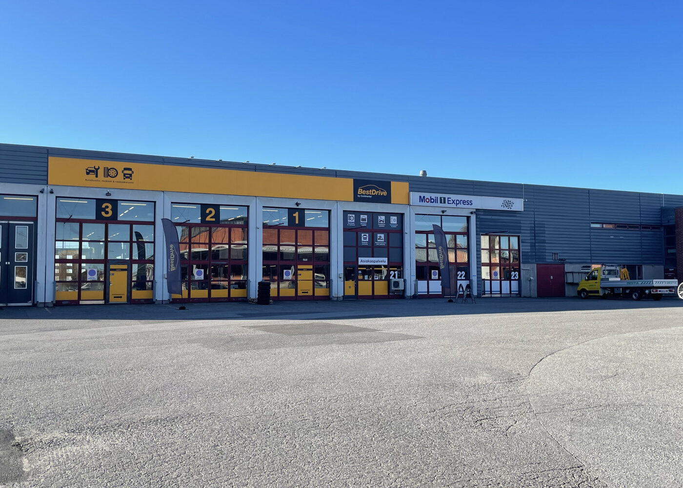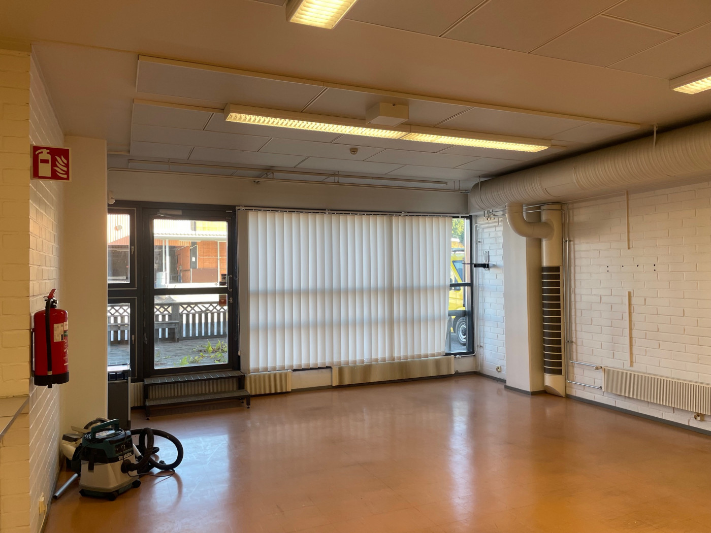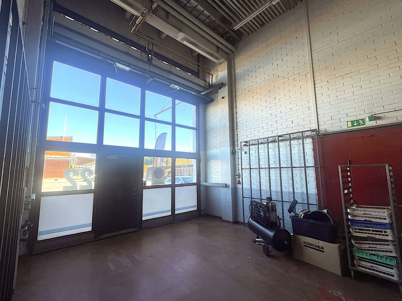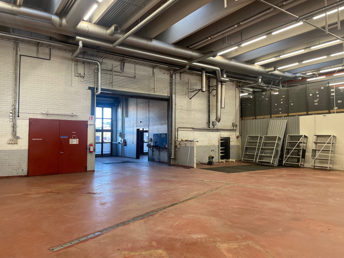 Korkea tila, myös kuorma-autot mahtuvat hyvin sisään.