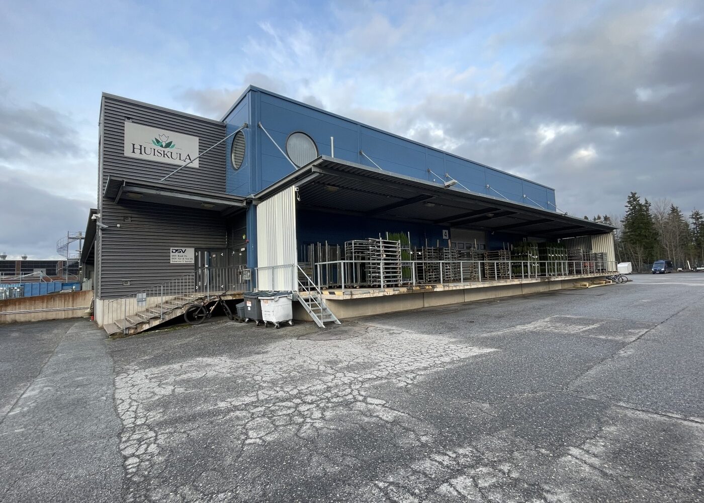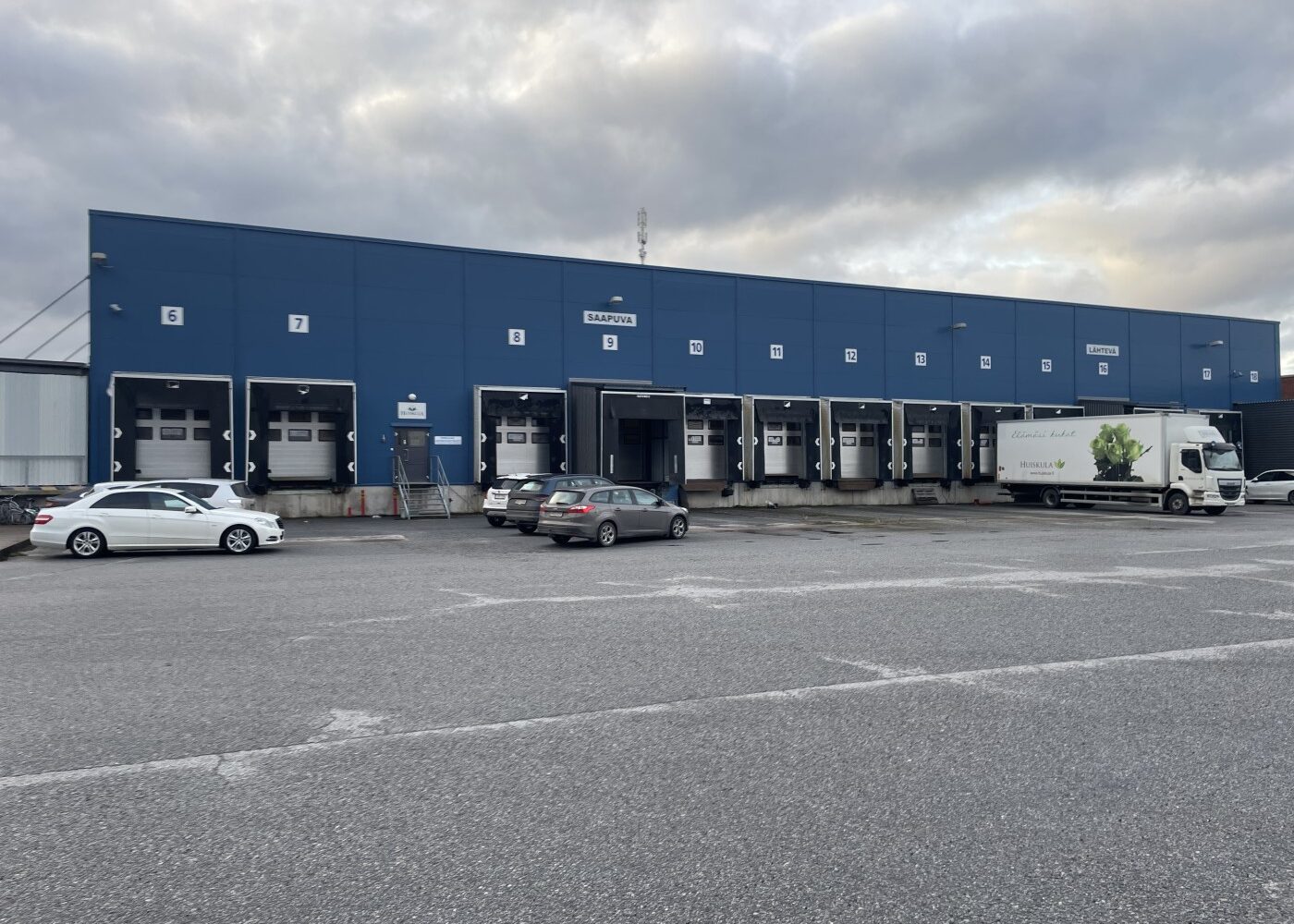 Hallissa lastaustaskuja 13kpl ja lisäksi lastauslaituri jossa 5 kpl nosto-ovia.