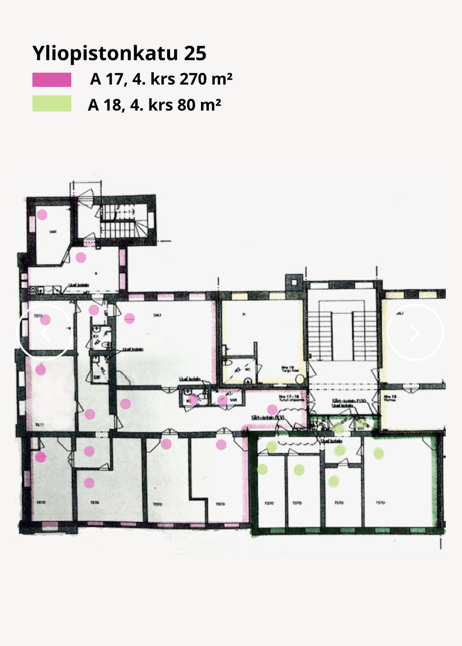 Vuokrattavana 4 kerroksen 350 m2 toimisto arvotalosta ydinkeskustassa, kävelykadun varrella, osoitteessa Yliopistonkatu 25, Turku.